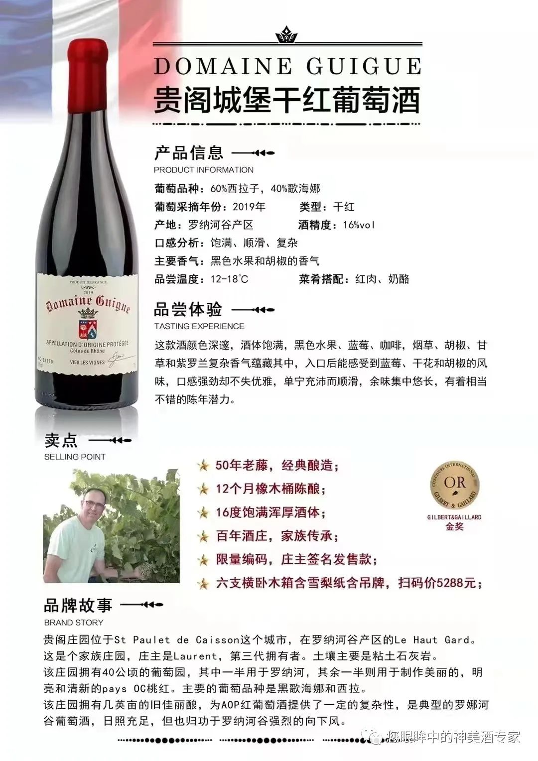 “50年老藤,12个月橡木桶,16度饱满酒体,庄主前面限量发售”