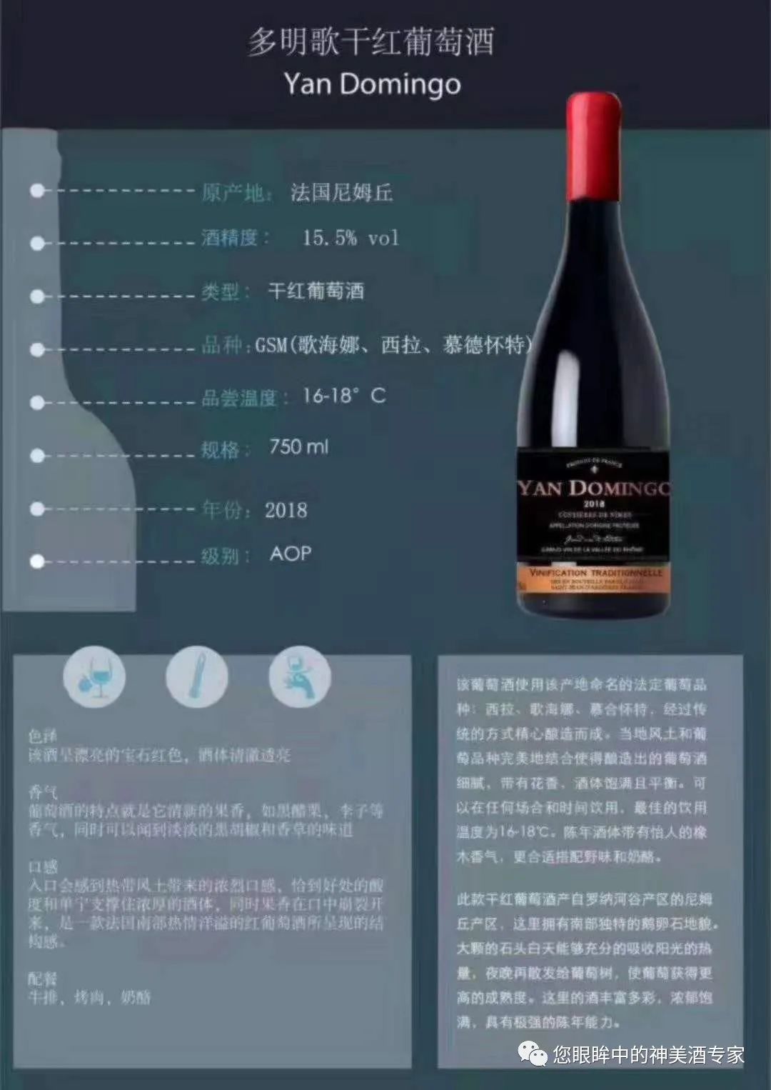 “法国尼姆丘产区,蜡封工艺,勃艮第瓶,GSM混酿”