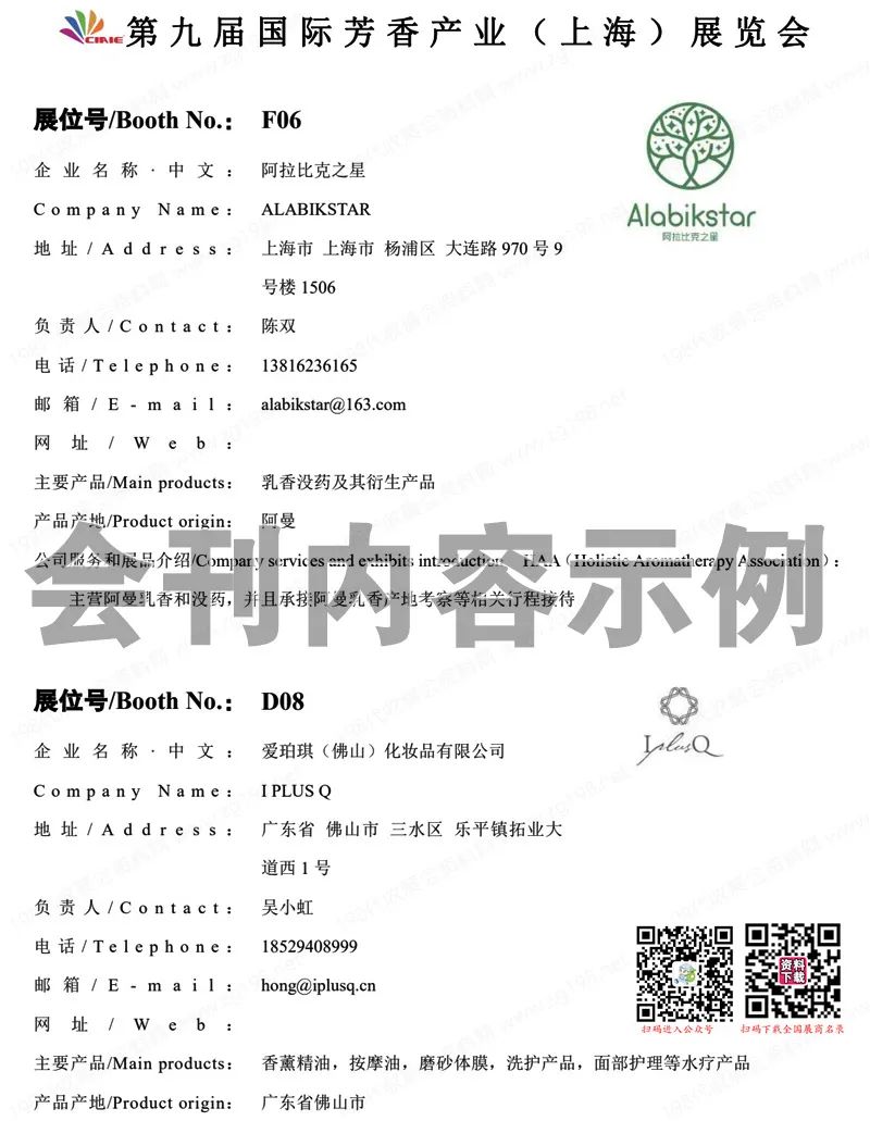 2023第九届国际芳香产业上海展览会会刊-展商名录