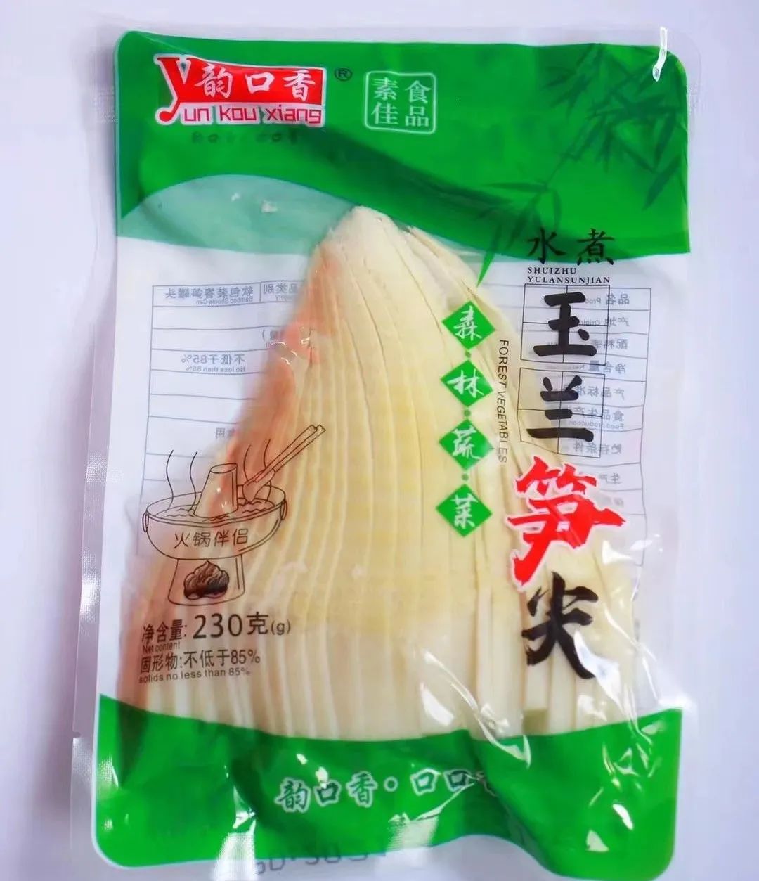 原材料取之天然,产品加工无防腐剂,富含多种氨基酸,膳食纤维丰富,口感鲜嫩,脆度好,是一款健康食品。公司已建立起一套完善的管理体系,以“优质、绿色、健康”为企业宗旨,采用“公司+基地+农户”的经营模式,形成了以公司的水煮笋产品加工为龙头,带动种植基地的生产经营格局。