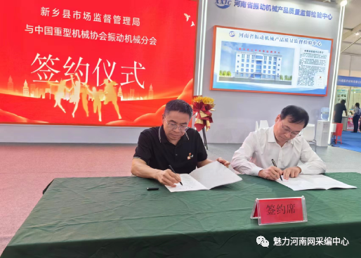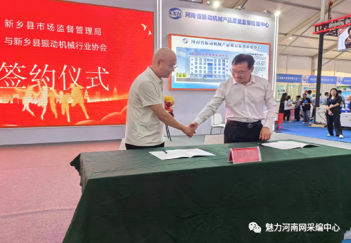 (魅力河南网)8月24日,中原农谷首届振动机械产业博览会再传捷报。新乡县市场监督管理局与中国重型机械协会振动机械分会、新乡县振动机械行业协会分别签订战略合作协议。三方将发挥各自在人才、技术、资源等方面的优势,全面提高全县质量总体水平。