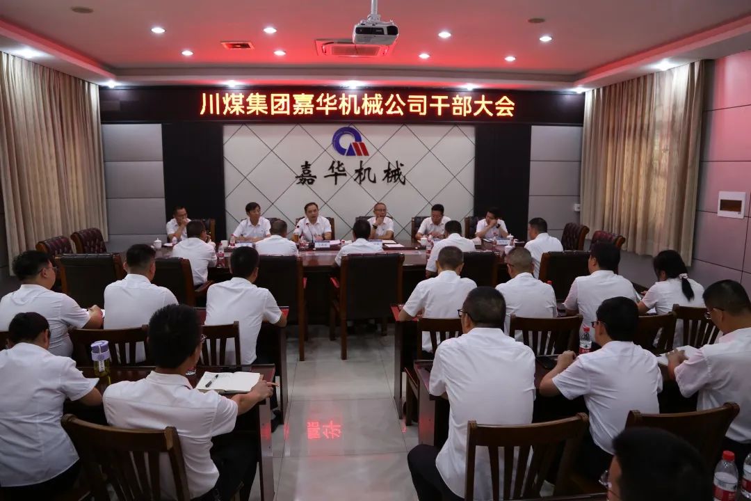 8月24日,嘉华机械公司召开干部大会,宣布集团党委在嘉华机械公司提级管理过渡期内负责人的决定。川煤集团党委书记、董事长王昌润出席会议并讲话。集团副总工程师,华荣公司党委副书记、副董事长、总经理奚光荣(主持华荣公司党委会、董事会全面工作)出席会议,川煤集团党群人事部负责人主持会议并宣布集团党委决定。