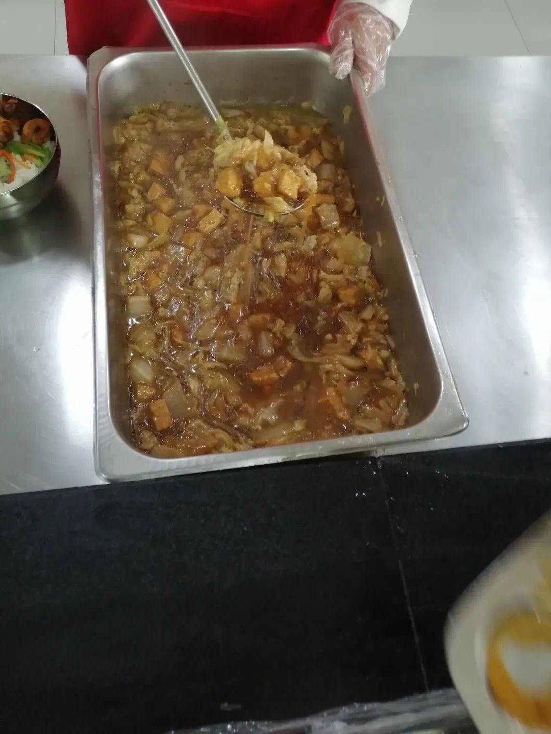 严格执行师生同餐机制。所有教师用餐执行学生12元营养套餐标准,保证教师用餐同学生用餐在制作程序、用料、加工方面一致,同灶同吃。