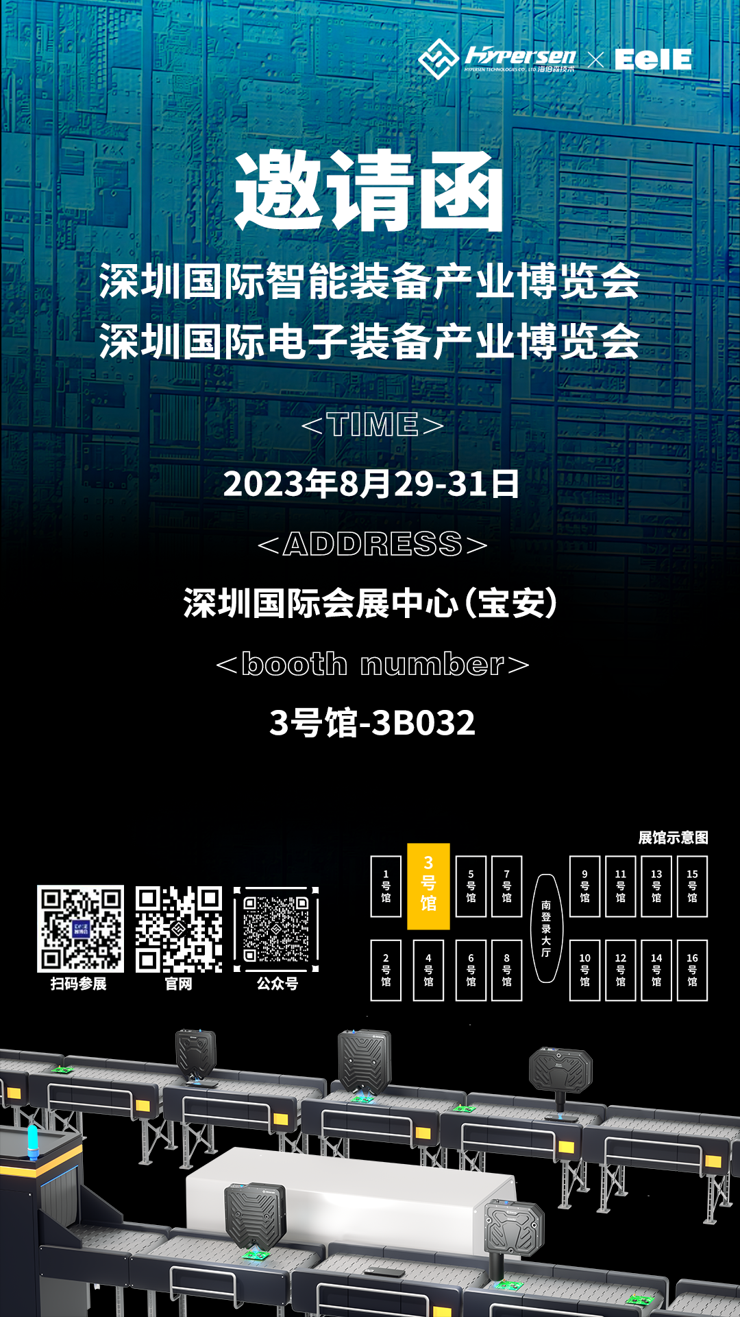 2023 EeIE智博会 将于8月29日-31日在深圳国际会展中心(宝安)举办,海伯森将在 3号馆3B032 展示自主研发的国产高端智能传感器以及应用方案,恭候广大客户朋友来访交流!