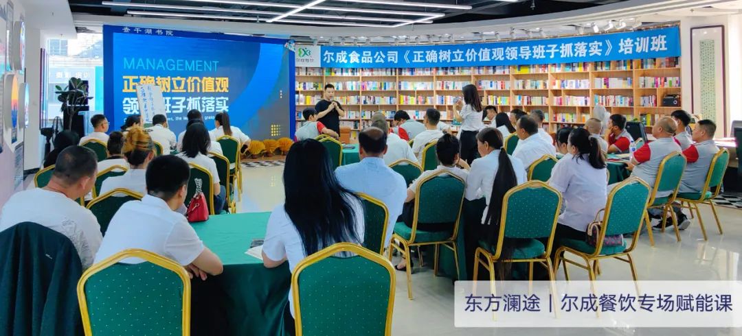 为树立职场人正确价值观,调整工作心态,增强工作幸福感,提高管理者抓工作落实能力,2023年8月26日,尔成餐饮公司在查干湖书院举办了《正确树立价值观领导班子抓落实》培训班。