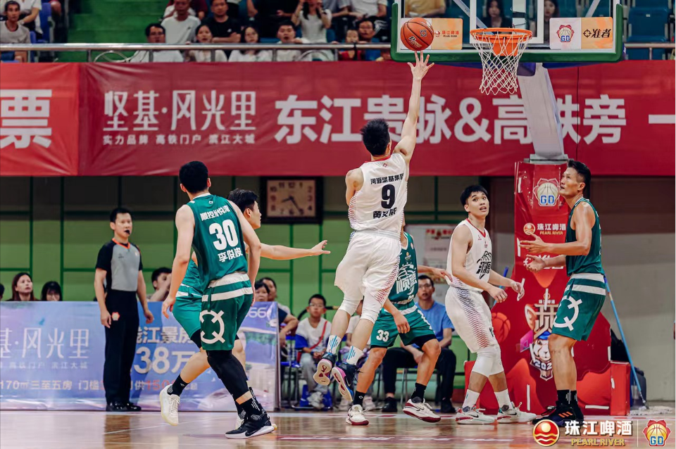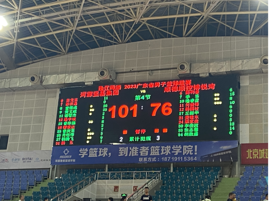 第四节,河源队正常轮换,降慢速度控制节奏,顺德队努力追分但一三节的窟窿太大无法弥补,最终河源队以101:76捍卫主场,成功晋级四强。