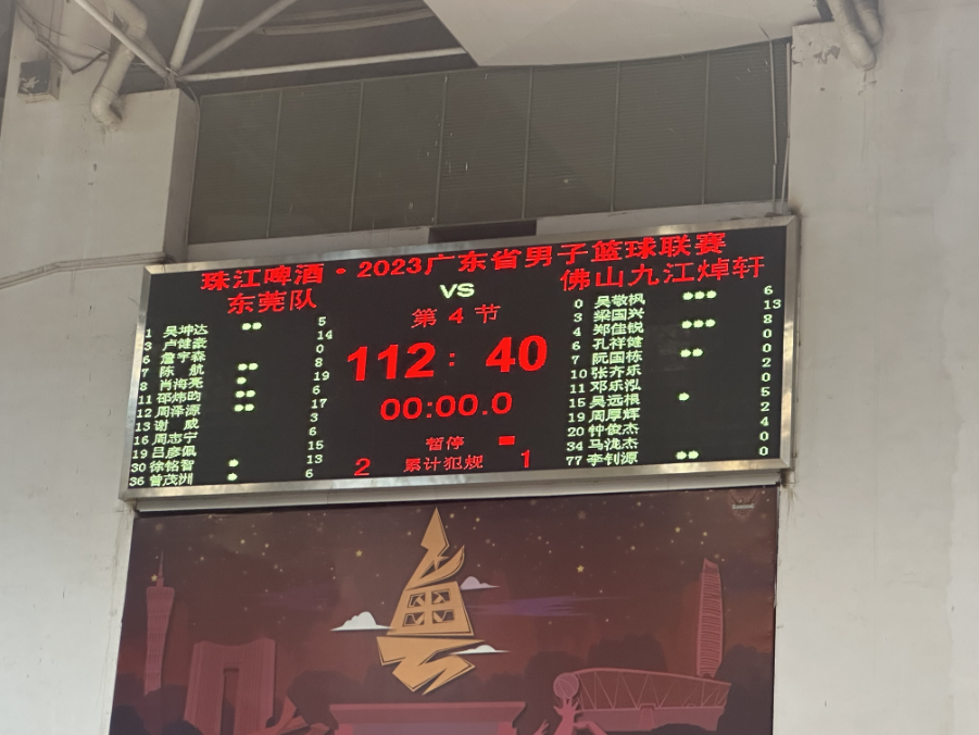 末节比赛已然失去悬念,佛山队无心再战,最终东莞在主场以112:40大胜佛山,成功晋级四强。
