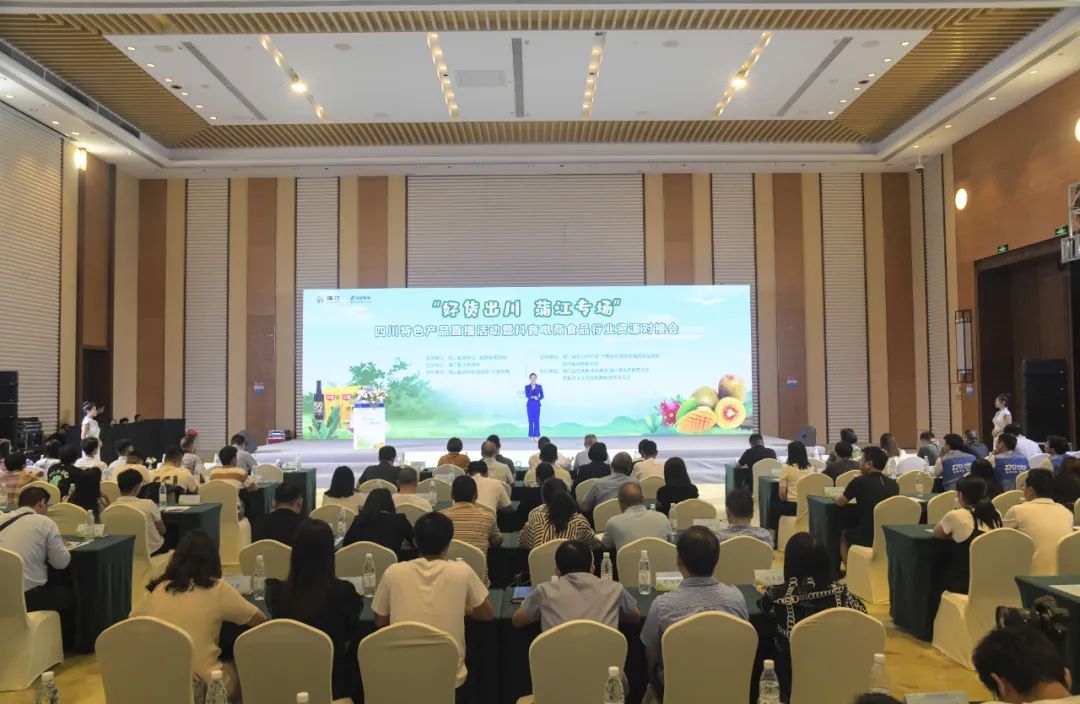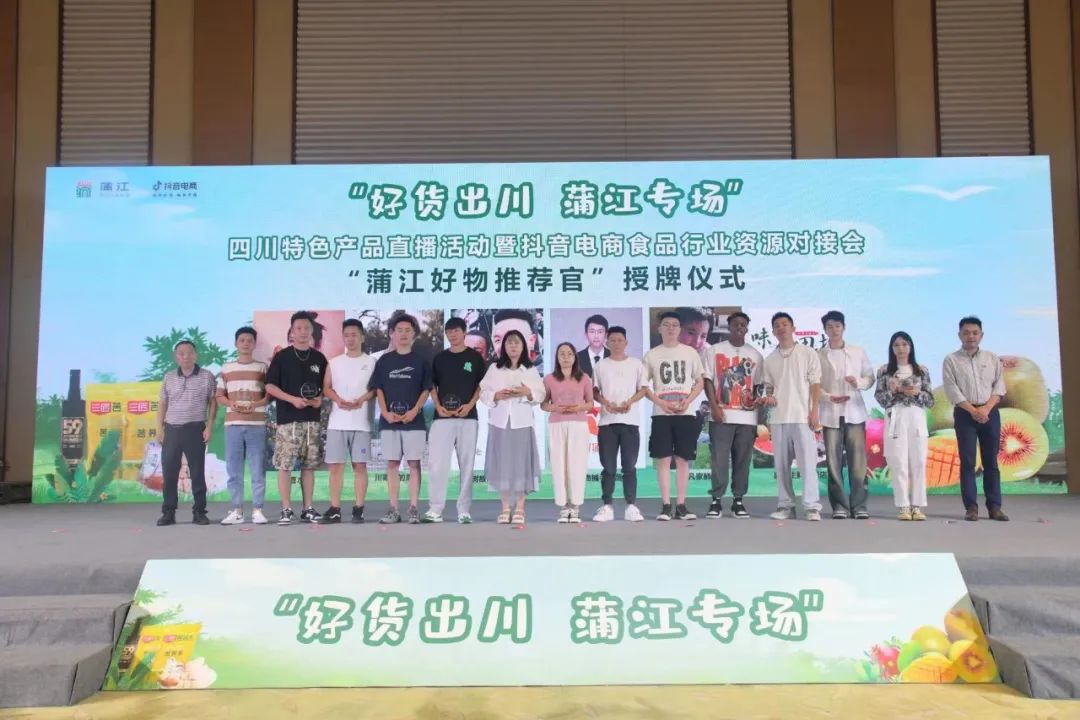 为助力百万商家上线,8月25日,主题为“好货出川·蒲江专场”的四川特色产品直播活动暨抖音电商食品行业资源对接会正式开启。活动由商务厅与成都市商务局指导、蒲江县人民政府主办、蒲江县商务和物流局、抖音电商承办,蒲江县农业农村局、泸定县经济信息和商务合作局、四川省网商促进会支持。政府有关部门、电商行业协会、主播达人、电商企业代表、服务商代表等200余人参加本次活动。