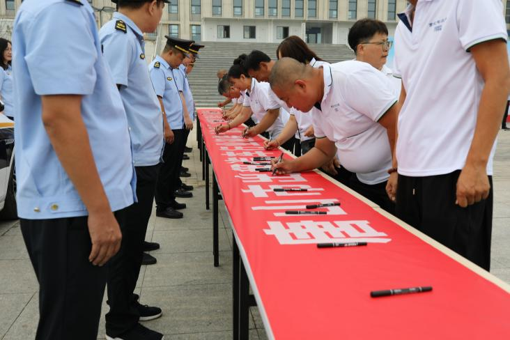 为进一步巩固提升出租车行业整体文明服务意识,展示唐山市曹妃甸交通新形象,按照全市统一部署,8月26日上午,曹妃甸区委宣传部、曹妃甸交通运输局共同组织“迎接‘旅发’·‘陶博’盛会 我是文明市民 要为城市争光 我是燕赵儿女 要为河北争气 我承诺 我践行 我奉献”万人签名活动,曹妃甸交通运输局主要负责同志、曹妃甸区委宣传部相关负责同志、曹妃甸交通运输局相关科室负责同志,2家出租公司经理,20名出租车代表参加活动。