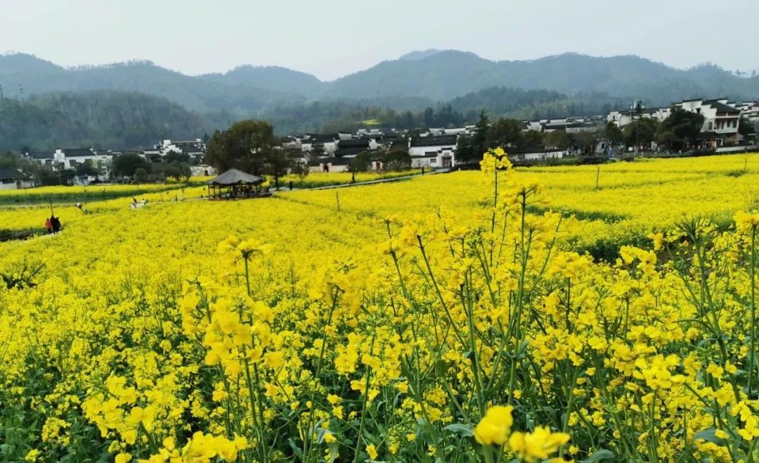 婺源是沧海桑田下的杰作,油菜花田以绿意打底,黄作色,从山顶铺到山脚,漫山遍野,层层叠叠,犹如一幅鲜活浓烈的水彩画。