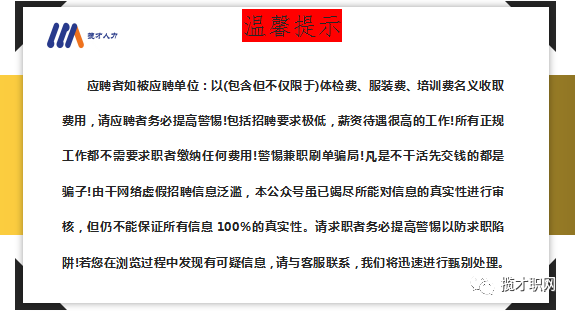 银川某大型连锁餐饮公司 1、岗位1 烧烤学徒 20名 2、岗位要求:年龄18周岁以上,回汉不限,男性。 3、工作内容:给烧开师傅做副手,师傅手把手教,有上手机会。 4、上班时间:下午14:30--次日凌晨2:30(其中14:30-17:30时间段为活动时间和开会时间) 5、福利待遇: 5-1、薪资:3200-3400元/月+300元满勤。满一年涨幅300工龄奖。 5-2、包吃包住,伙食好。 5-3、每月休息 4个半 天。 6、工作地址:大阅城店、贺兰民生兴庆府店、兴庆区凤凰北街店、枫林湾店 7、面试地点:银川市西夏区西夏古城 备注:不住宿可安排离家近的店 联系电话:15009585622(微信同号) 银川某大型连锁烧烤店 1、岗位2 服务员员 15名 2、岗位要求:年龄18岁以上,回汉不限,男女不限; 3、工作内容:点菜,上菜,收桌。 4、上班时间:下午14:30--次日凌晨2:30(其中14:30-17:30时间段为活动时间和开会时间) 5、福利待遇: 5-1、薪资:3200-3400元/月+300元满勤,干满一年工资涨幅300。 5-2、包吃包住,伙食好。 5-3、每月休息 4个半天。 6、工作地址:大阅城店、贺兰民生兴庆府店、兴庆区凤凰北街店、枫林湾店 7、面试地点:银川市西夏区西夏古城 备注:不住宿可安排离家近的店 联系电话:15009585622(微信同号) 银川某大型连锁烧烤店 1、岗位3 前台收银员 6名 2、岗位要求:年龄18岁以上,回汉不限,限女性。 3、工作内容:收银、开票以及临时工作。 4、上班时间:下午14:30--次日凌晨2:30(其中14:30-17:30时间段为活动时间和开会时间) 5、福利待遇: 5-1、薪资:3500元/月+300元满勤。 5-2、包吃包住,伙食好。 5-3、每月休息 4个半天。 6、工作地址:大阅城店、贺兰民生兴庆府店、兴庆区凤凰北街店、枫林湾店 7、面试地点:银川市西夏区西夏古城 备注:不住宿可安排离家近的店 联系电话:15009585622(微信同号) |