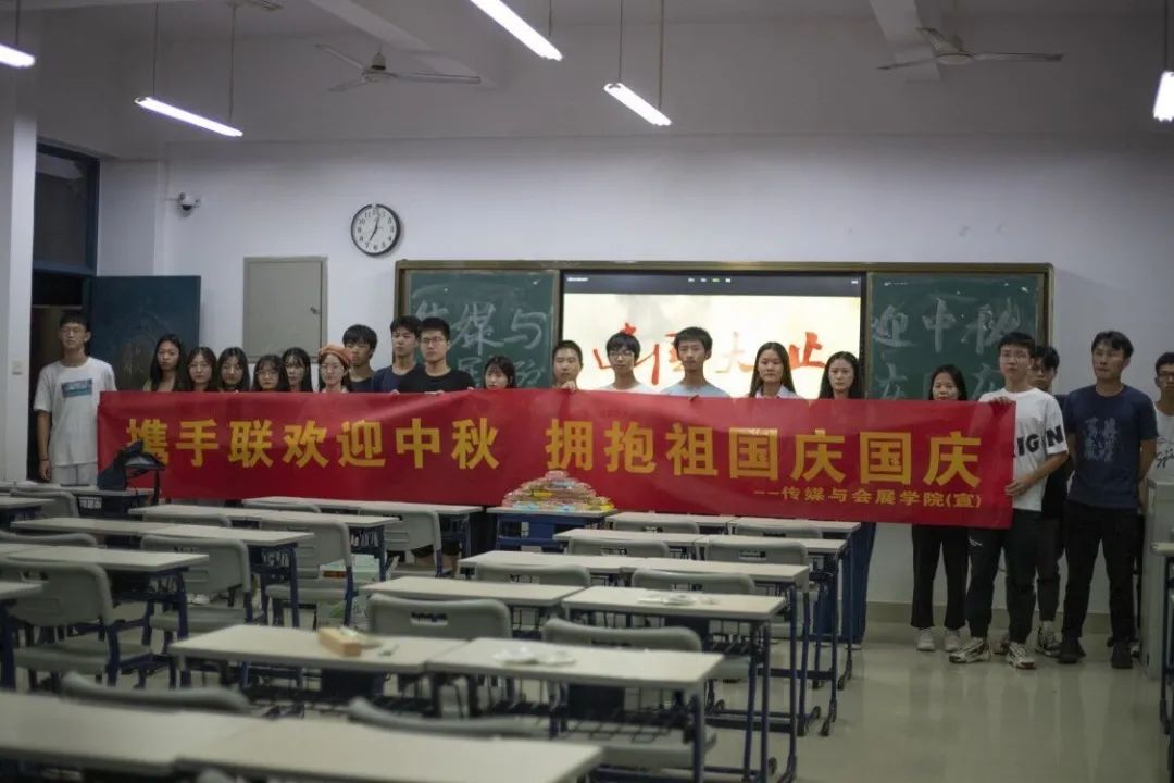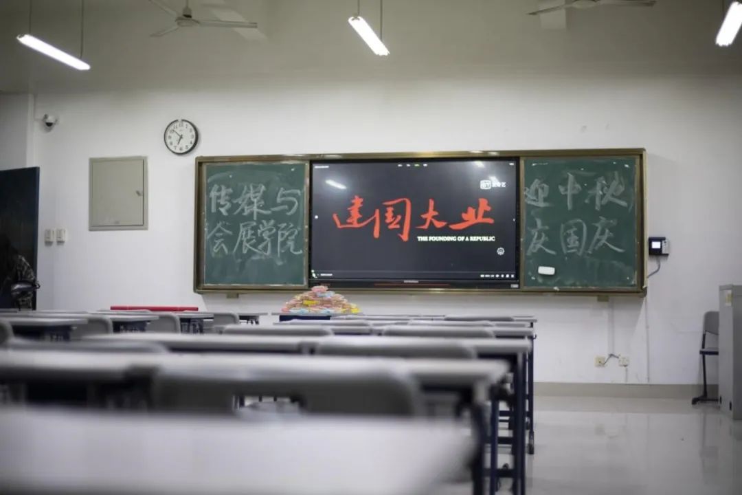 为庆祝中华人民共和国成立71周年,喜迎国庆逢中秋,为激励广大学生牢记中国共产党建立新中国的光辉事迹。10月1日晚7点,传媒与会展学院于连江校区诚信楼303教室组织留校的学生观看《建国大业》电影活动,以此庆祝国庆。