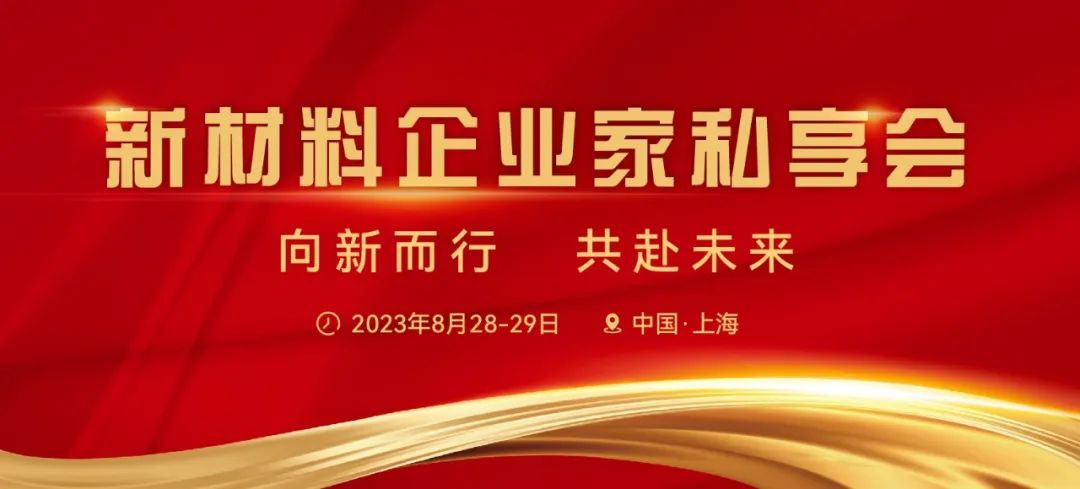 2023年8月28-29日,《新材料企业家》私享会拟在上海举办,本次活动由新材料在线®主办,邀请华东地区知名院士专家、明星企业家高管、知名投资机构合伙人授课,分享新材料领域投资经验及新材料产业新技术、新形势、新机遇。