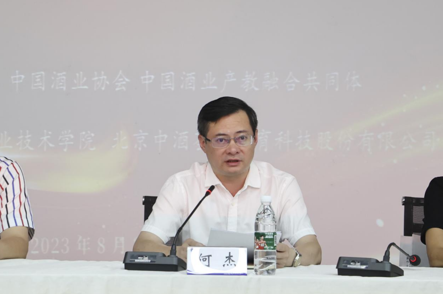 何杰代表中国酒业产教融合共同体及学校全体师生,向出席开班仪式的领导和学员们表示热烈的欢迎。何杰对学校历史和近几年在教学、科研、师资队伍、人才培养、产教融合等方面情况进行了介绍,特别对中国酒业学院、中国酒业产教融合共同体、中国白酒生态智能酿造产教融合示范园等重要平台进行了介绍。