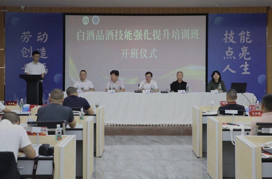 在中国酒业协会的支持下,由中国酒业产教融合共同体指导,泸州职业技术学院、北京中酒荟萃教育科技股份有限公司及成渝地区双城经济圈(泸州)商学院共同主办的白酒品酒技能强化提升培训班于8月27日上午在我校开班。中国酒业产教融合共同体理事长、学校党委书记何杰出席开班仪式并致辞。