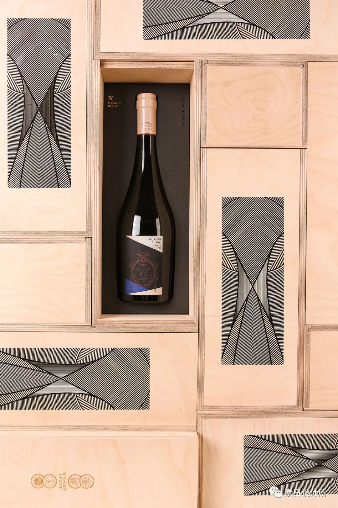台湾处在酿酒环境相当艰困的亚热带岛屿上,开创葡萄酒事业是非常不容易的。在政府停止酿酒技术扶植后,许多的葡萄园逐渐荒废。Weightstone来自致力提升台湾农业的兴农企业,创办人在40载的农业生涯中,推动并创新许多能改善台湾农业环境的产品与服务,他人生中最后一个愿望,是协助台湾的葡萄酒产业。希望透过打造一座现代化的葡萄园,做出一瓶令台湾人骄傲的葡萄酒。 品牌logo以家徽的方式呈现,象征着台湾农业的牛,与其默默耕耘的精神,W与S的结合,层叠的线条透露 Weightstone 踏实的堆叠与累积。酿制葡萄酒是西方的技术,在视觉呈现上融入了东方的精神及文化,代表四季的梅兰竹菊也是叙述农业应顺应天时而作,盘长绳结、如意将品牌永续经营的概念堆叠其中,也取核心人物,其名“亚”字作为轮廓外型。在瓶身包装纸将 Weightstone 的核心理念,以插画的手法表现。这是酝酿许久、等待开瓮醒醮的酒品,固然在设计导向除了现代(俐落的色彩分割)更保有经典的气息。