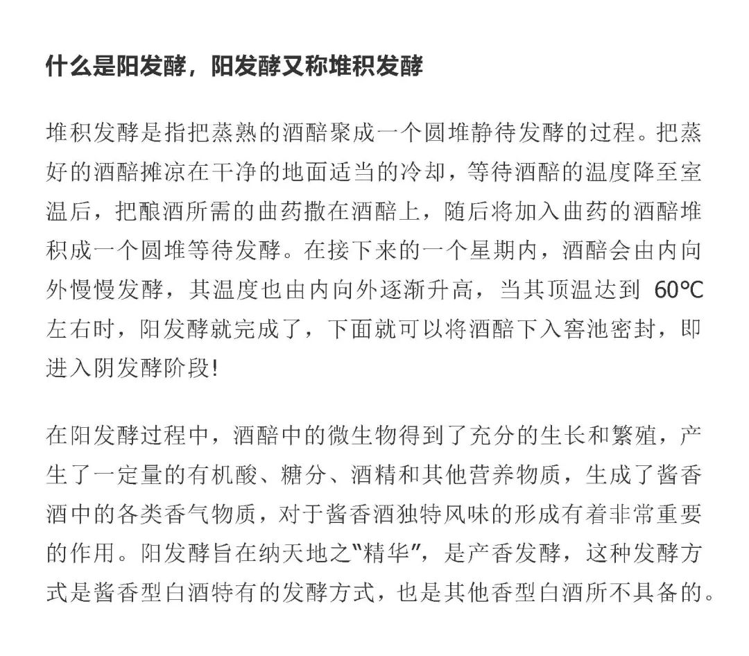 我们都知道酱香酒生香靠发酵,酱香酒的发酵工艺直接决定了酱香酒的品质,熟悉酱香酒的人都知道酱酒“12987”工艺中,“8”代表的是酿酒过程中的八轮发酵。酱香酒作为世界上香味最复杂的酒品之一,与其独特的发酵工艺是密不可分的,今天我们简单地了解一下酱香酒的阳发酵和阴发酵!