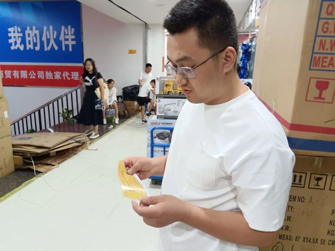 推广人员向通辽市场的玩具商户详细介绍了第12届中国北方玩具博览会的规模及对采购商的服务,并派发邀请函邀请商家到会参观采购。让我们一起来看看认真阅读的采购商吧