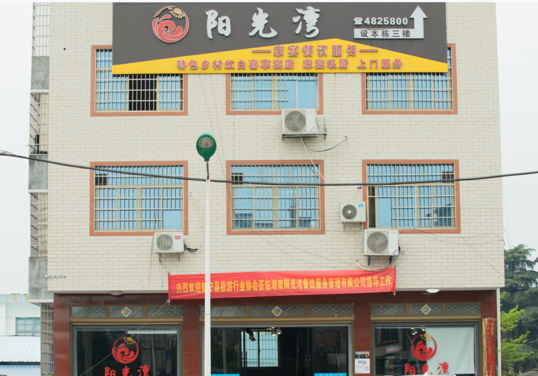同年11月与好友们共同创立了湖南阳光湾餐饮服务管理有限公司,开启了阳光湾的农村红白喜事宴席的创新之路。并严格按照食品卫生法规操作执行的,统一配送食材原材料、酒水等,统一培训厨房工作人员,提供全套餐饮设备、厨师、管理、服务员,为百姓专门定制的上门承办红白喜事酒席、单位年会聚餐、家宴私厨等服务,彻底为主家解决了办酒麻烦这一苦恼,无论是选择我们加工还是全包,真正做到让主家解放双手,只管接待亲朋好友,开怀畅饮!当时,湖南阳光湾家宴餐饮服务管理有限公司成为新宁乃至邵阳第一家家宴服务公司。