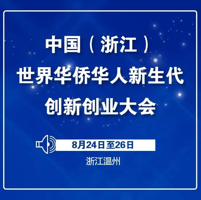由国务院侨办、中国侨联和浙江省政府共同主办的中国(浙江)世界华侨华人新生代创新创业大会将于8月24日至26日在温州举行。届时,来自世界各地的侨界青年将齐聚温州,共商创新创业大计,重要发展新能源、新技术、大健康、绿色基金、数字贸易等。温州政企新能源全产业杭州联络处#新能源产业展贸城#招商引资、招才引智、成果展示、商务会客、产业对接、长三角综合服务中心。