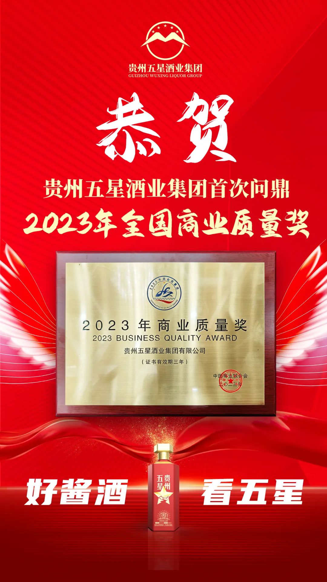 7月30日,由中国商业联合会主办的2023年全国商业科技质量大会在北京召开,会上同期颁布“商业质量奖”。贵州五星酒业集团首次荣获“全国商业质量奖”,成为此次会议唯一获此殊荣的贵州酱酒企业。