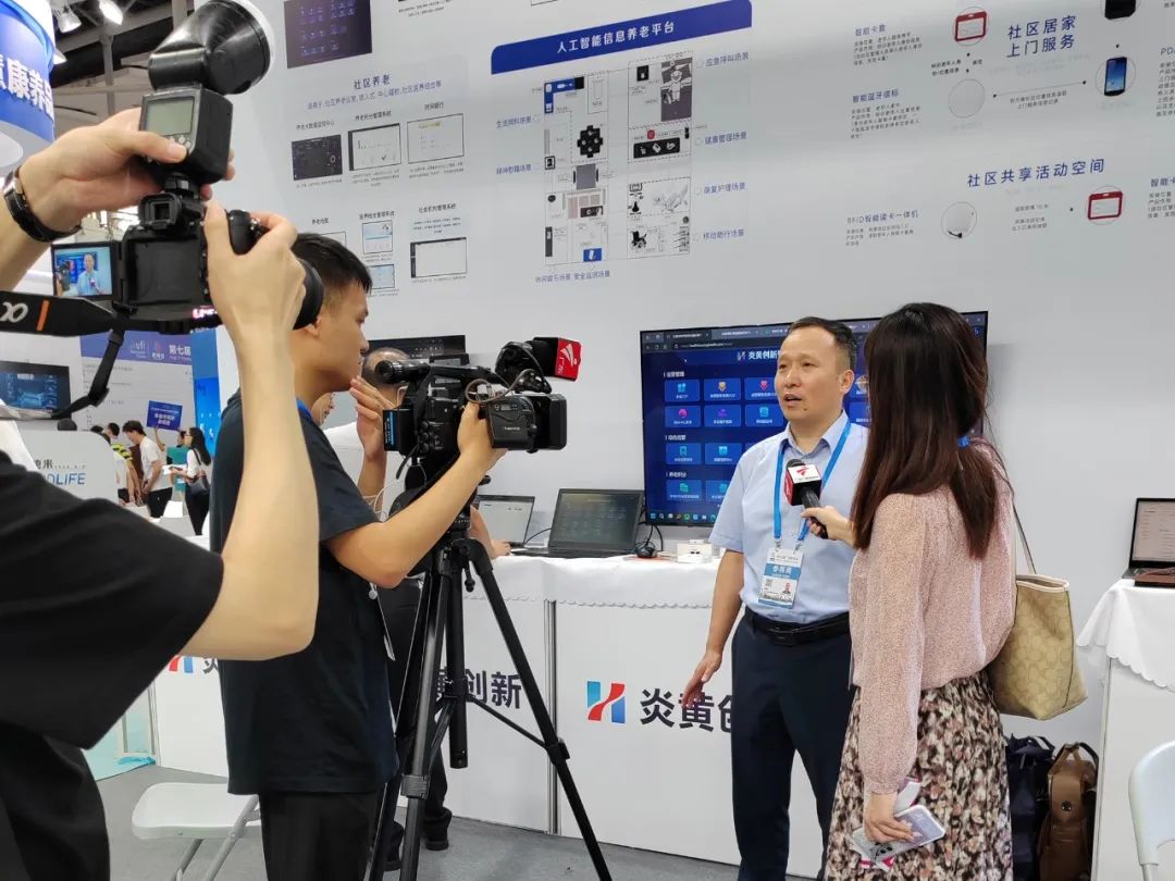 本次展会,炎黄创新获得中央电视台、广东卫视等电视等媒体专访。徐鹏董事长向媒体详细介绍了炎黄创新智慧养老领域的全产业生态,展示公司产品和服务、企业发展模式等,探讨产业发展、交流新趋势。