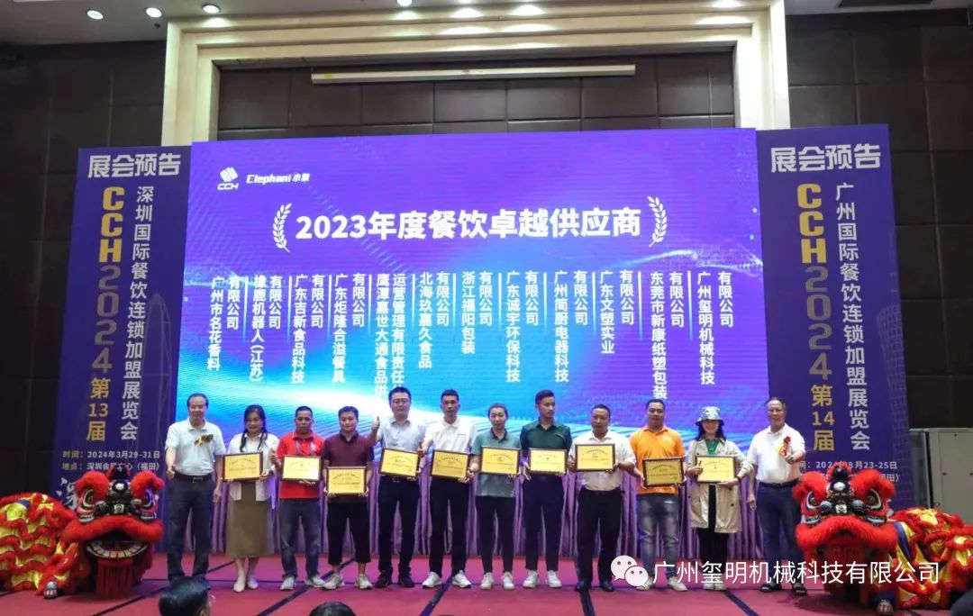 广州玺明在8月25日时受到主办方邀请参加晚宴,获得了2023年度餐饮卓越供应商的荣誉称号。