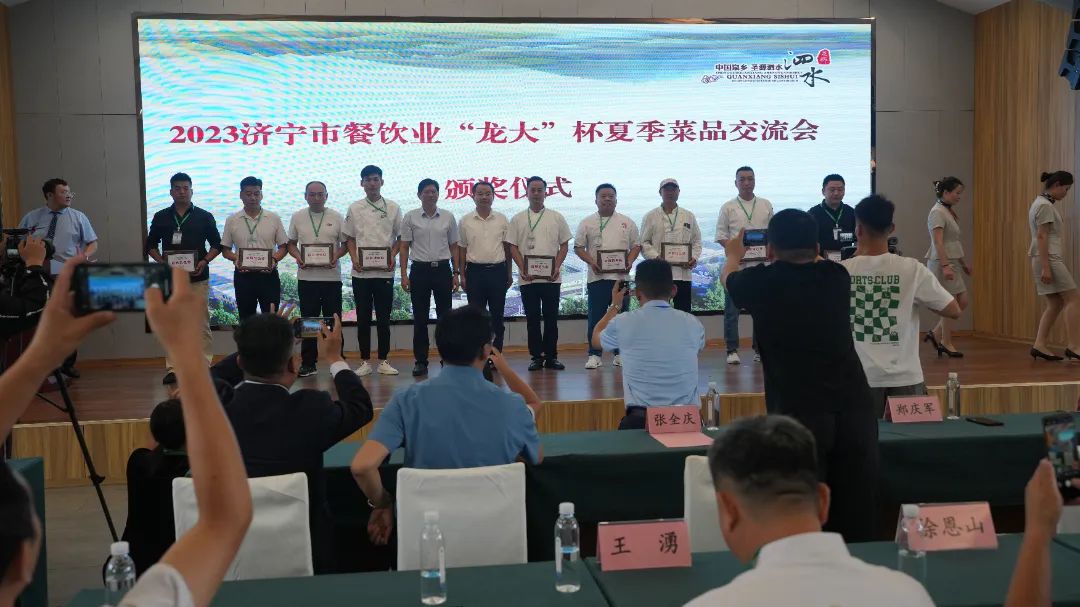 夏季菜品交流会最后,泗水县人民政府副县长张全庆、济宁市文化和旅游局二级调研员郑庆军、济宁市烹饪餐饮业协会会长曹会宇、济宁市烹饪餐饮业协会名誉会长王冠良、邹城市烹饪餐饮业协会会长范昭民,依次对本次大会做致辞。