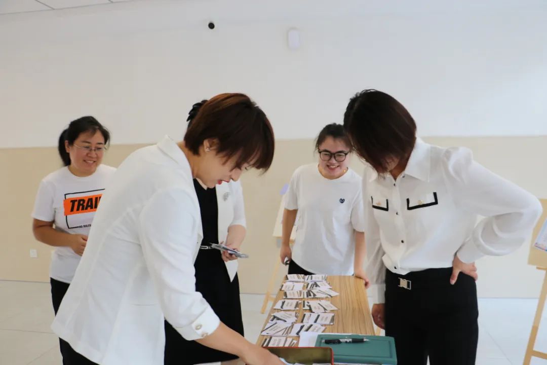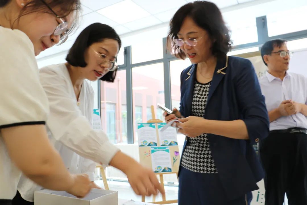 在第二阶段的教研产品发布会现场,各组的教研成果成为他们售卖的商品,老师们纷纷带着学校特制的成长积分卡到各个摊位去选购。