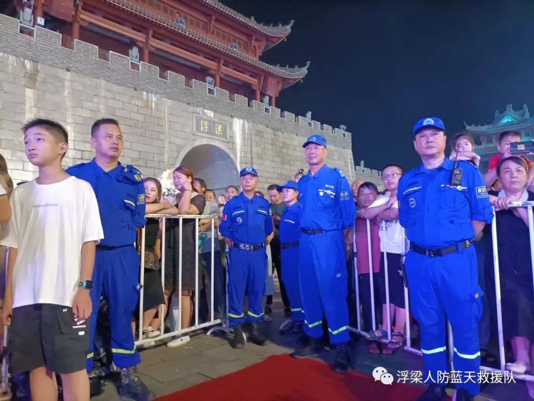 这次活动群众达5000多人为了保障浮梁人民的安全。浮梁人防蓝天救援队紧急联系乐平队、鄱阳队、景德镇队一起出队保障浮梁群众安全工作。