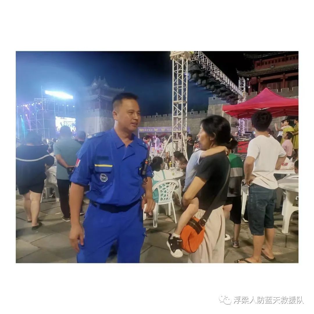 8月18日,活动第一天,副队长开源在活动现场发现一名小孩在寻找奶奶,赶紧抱起小孩四处寻找,还好奶奶就在不远处,快速找到。在人多密集的地方,还是要提醒家长一定要牵好小孩,不离开自己视线范围。