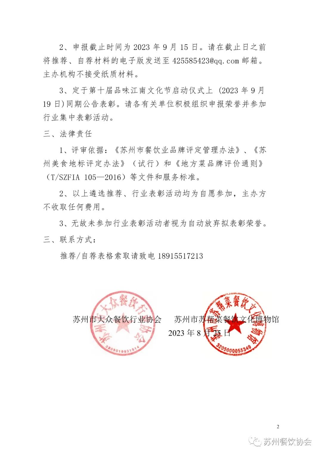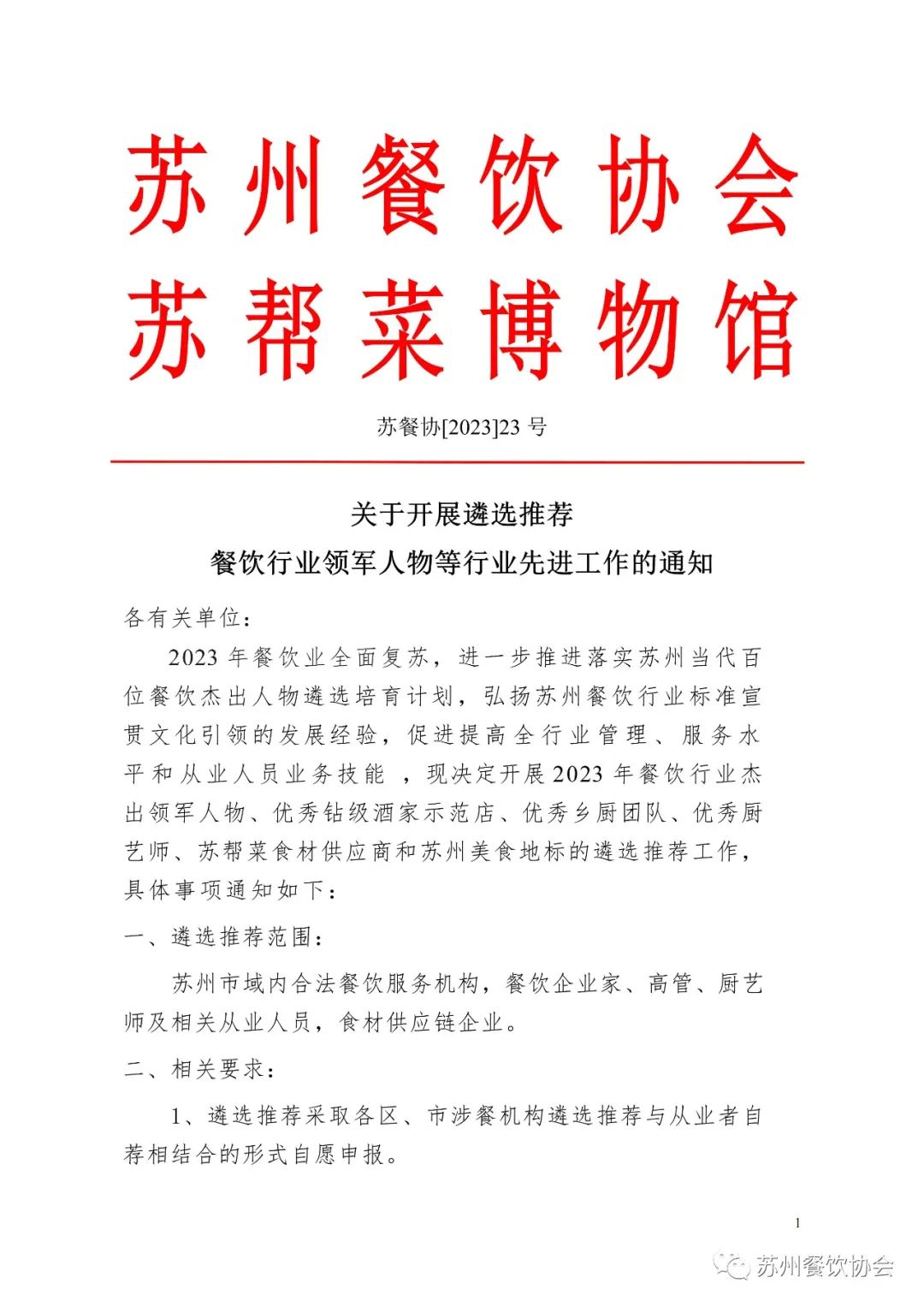 2023年餐饮业全面复苏,进一步推进落实苏州当代百位餐饮杰出人物遴选培育计划,弘扬苏州餐饮行业标准宣贯文化引领的发展经验,促进提高全行业管理、服务水平和从业人员业务技能 ,现决定开展2023年餐饮行业杰出领军人物、优秀钻级酒家示范店、优秀乡厨团队、优秀厨艺师、苏帮菜食材供应商和苏州美食地标的遴选推荐工作,详情见附件: