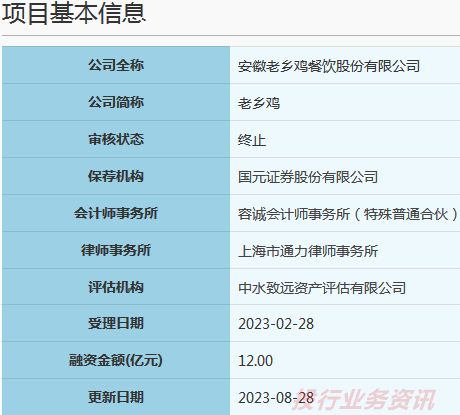 IPO|安徽老乡鸡餐饮股份有限公司上市申请终止!