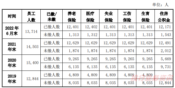 报告期各期末,公司用工人数及变化情况如下表所示: