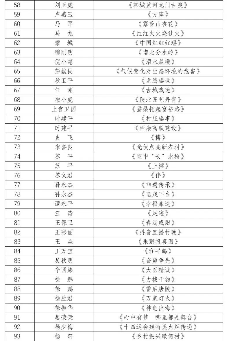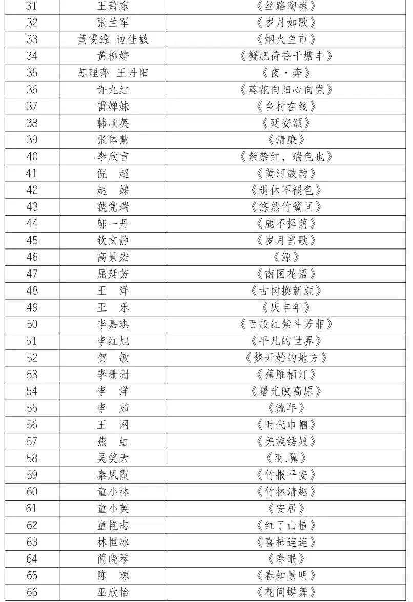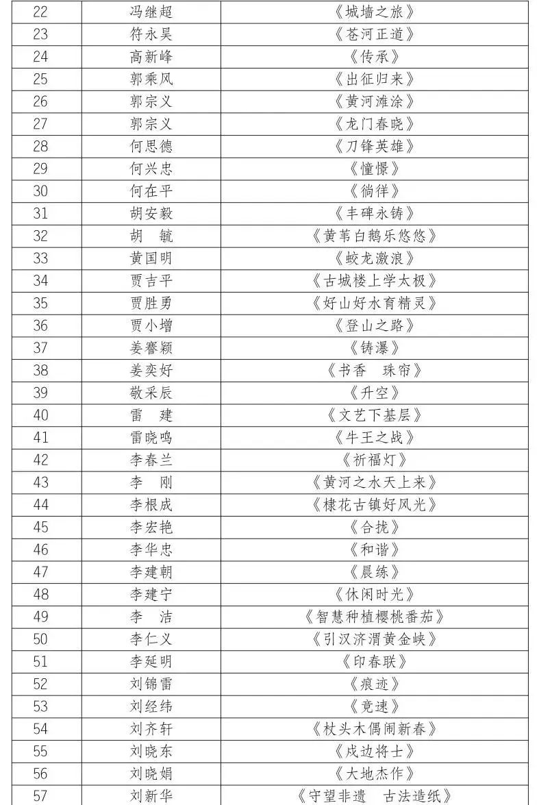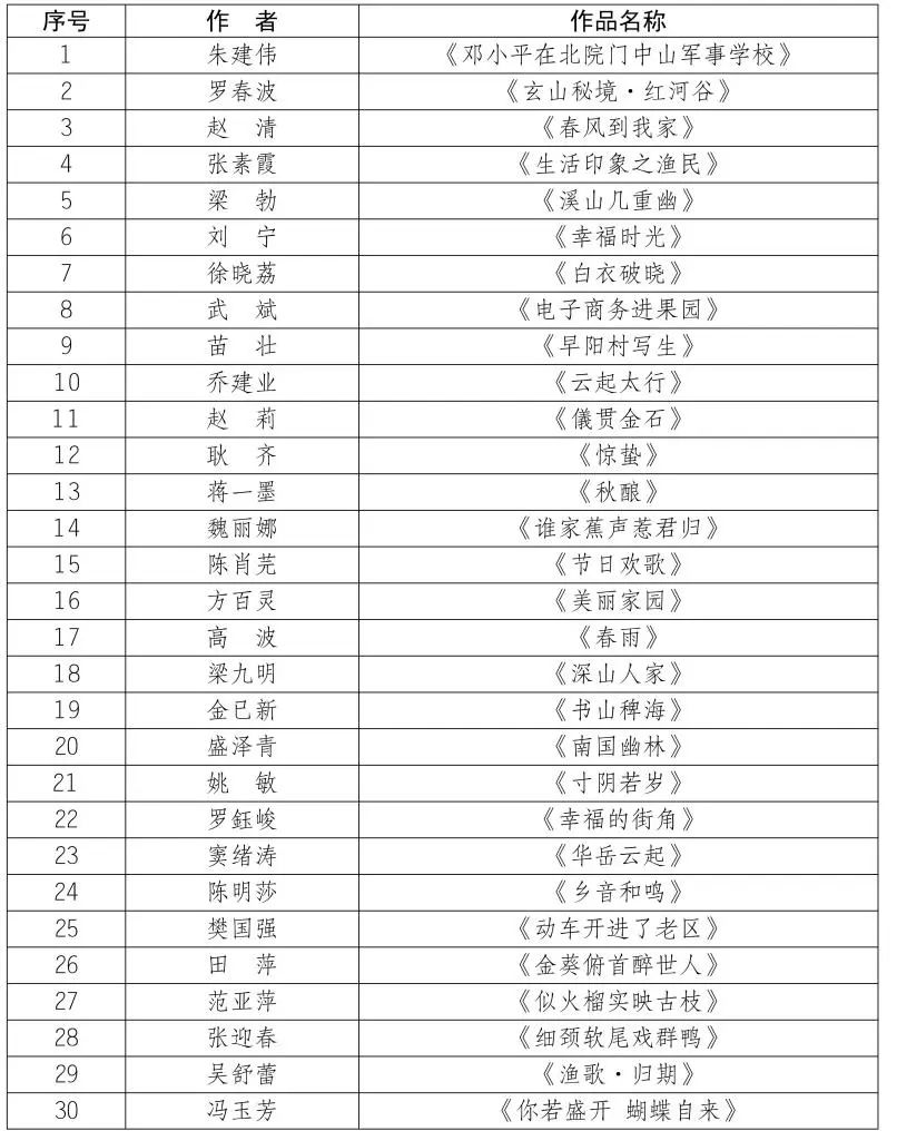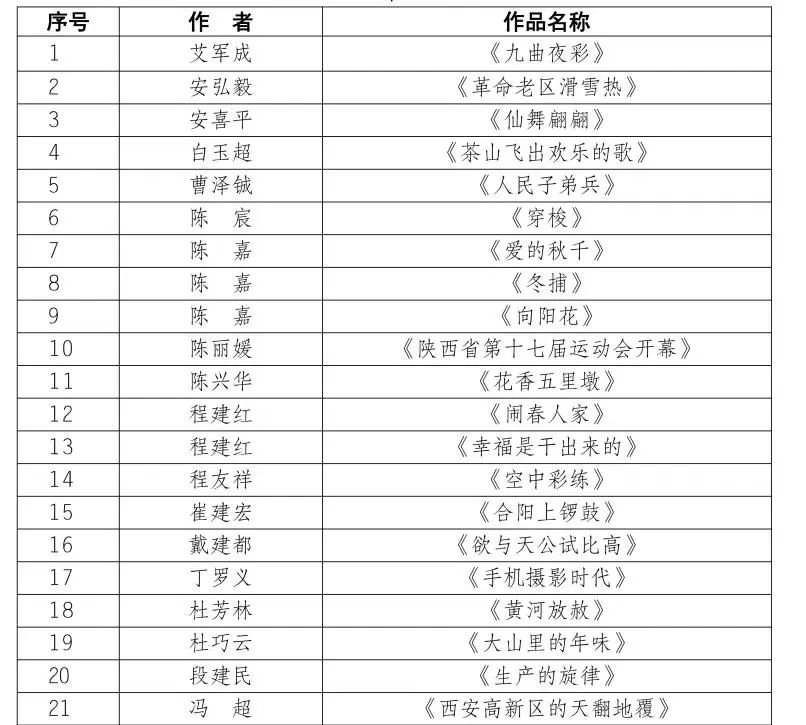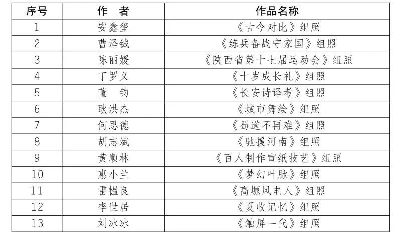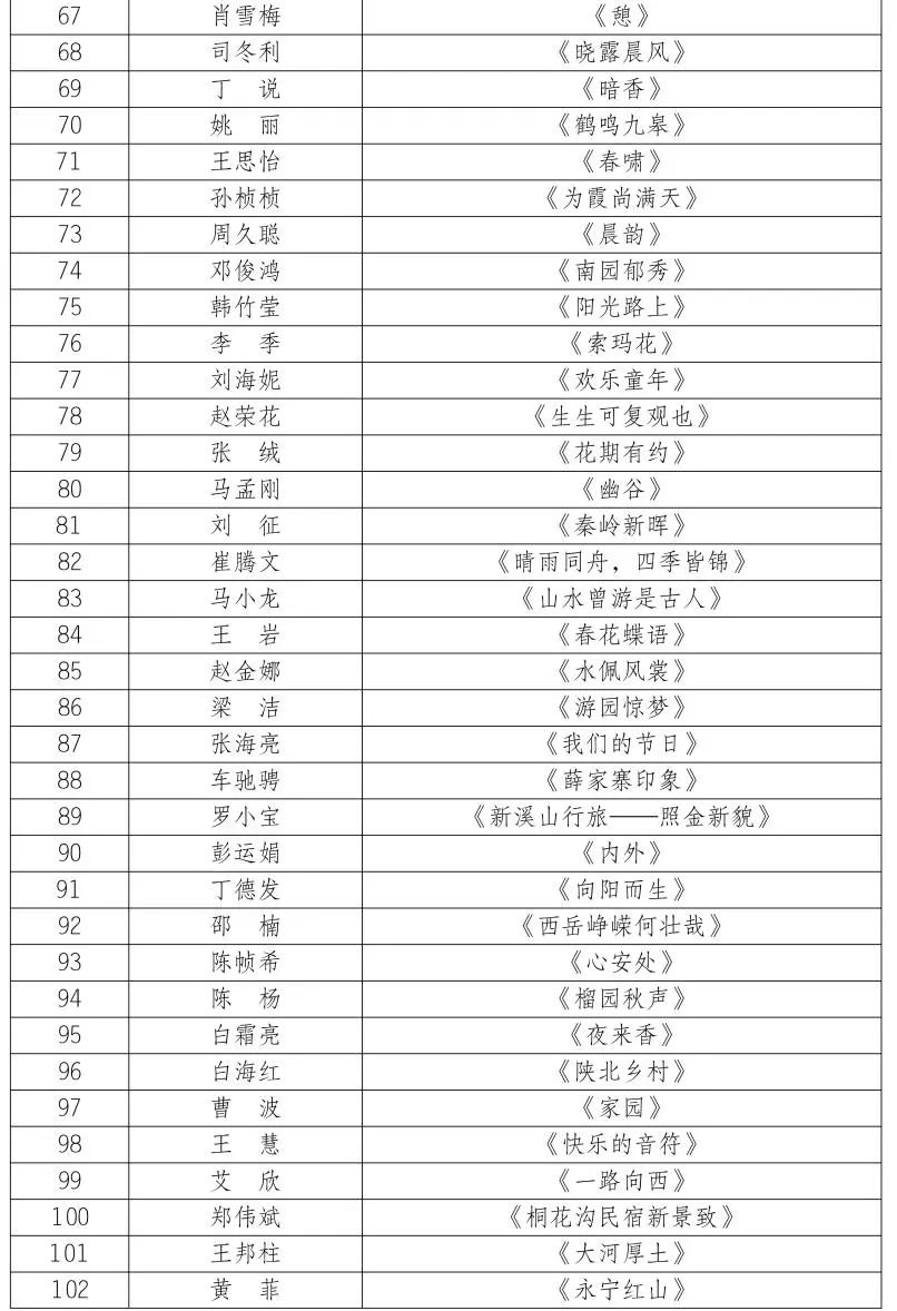 按照第十届陕西省艺术节相关工作安排,全省优秀美术书法摄影作品展评选工作已经完成,经展览艺术委员会评选,并报省文化和旅游厅审核同意,现将参展作品名单予以公布