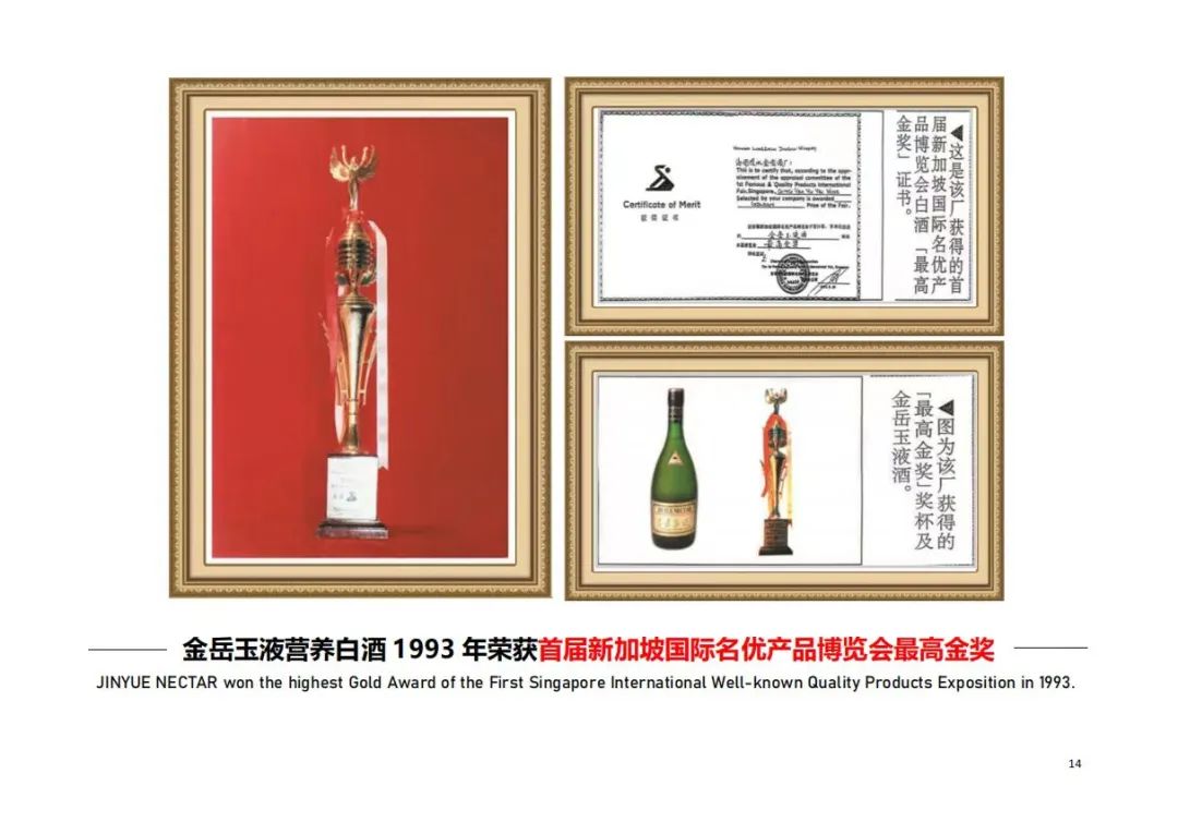 海南金岳酒厂发明出品的“金岳玉液”酒属营养型白酒,它的问世填补了国际、国内白酒无营养的空白。