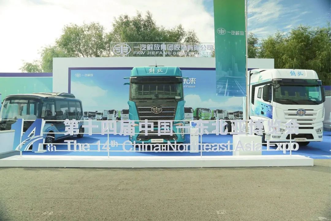以“共建东北亚,合作向未来”为主题的第十四届中国-东北亚博览会,于8月23日至27日在吉林省长春市举办。本次博览会共设置现代装备与新能源合作馆、数字经济馆、现代服务业馆和现代农业馆等8个展馆,国际标准展位3427个。一汽解放展区位于现代装备与新能源合作馆室外展区,契合新能源智能制造主题,共展出13款最新车型产品,包括中重型车、轻型车、客车、房车。采用氢燃料、纯电动、混合动力等多种燃料类型,实现多品类、多功能、多场景全面覆盖。