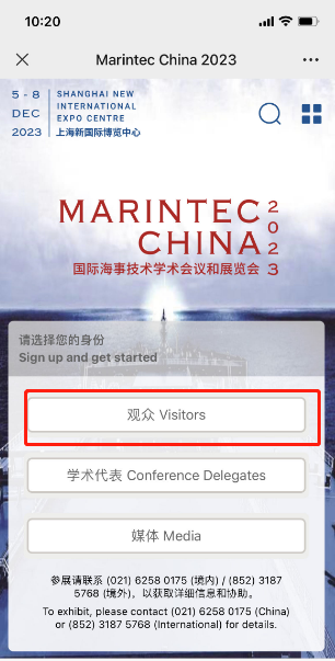 • 您可进行观众、论坛学术代表和媒体的预先登记。其中观众和媒体不收取费用,高级海事论坛学术代表将收取参会费,收费标准请浏览“MarintecChina”微信公众号相关栏目或至会展官网。
