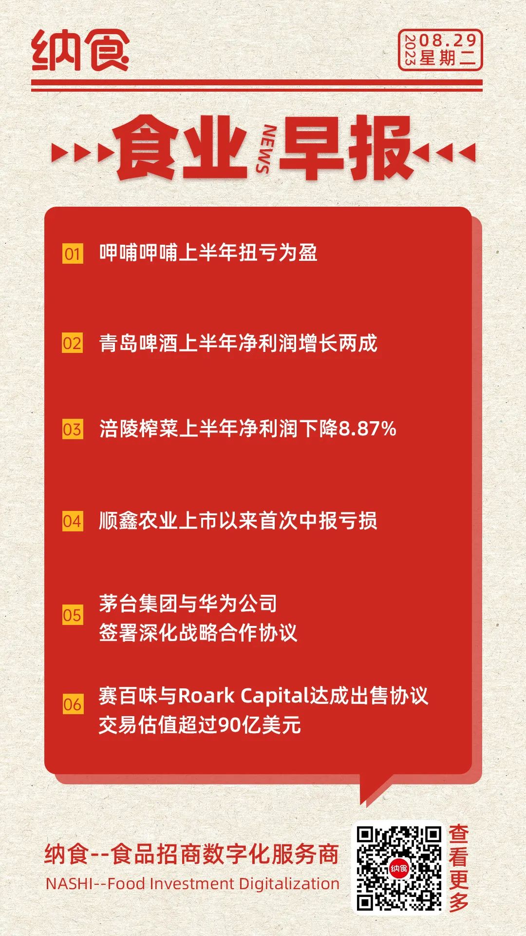 8月27日,呷哺呷哺发布中报,上半年收入28.46亿元,同比增长32%,并由去年上半年亏损2.78亿元转盈利210万元,在营餐厅总数1094间,包括中国大陆1080间餐厅。期内,呷哺呷哺新开设91间呷哺呷哺餐厅,新开设28间凑凑餐厅,也于上海新开设1间趁烧餐厅。(公司发布)