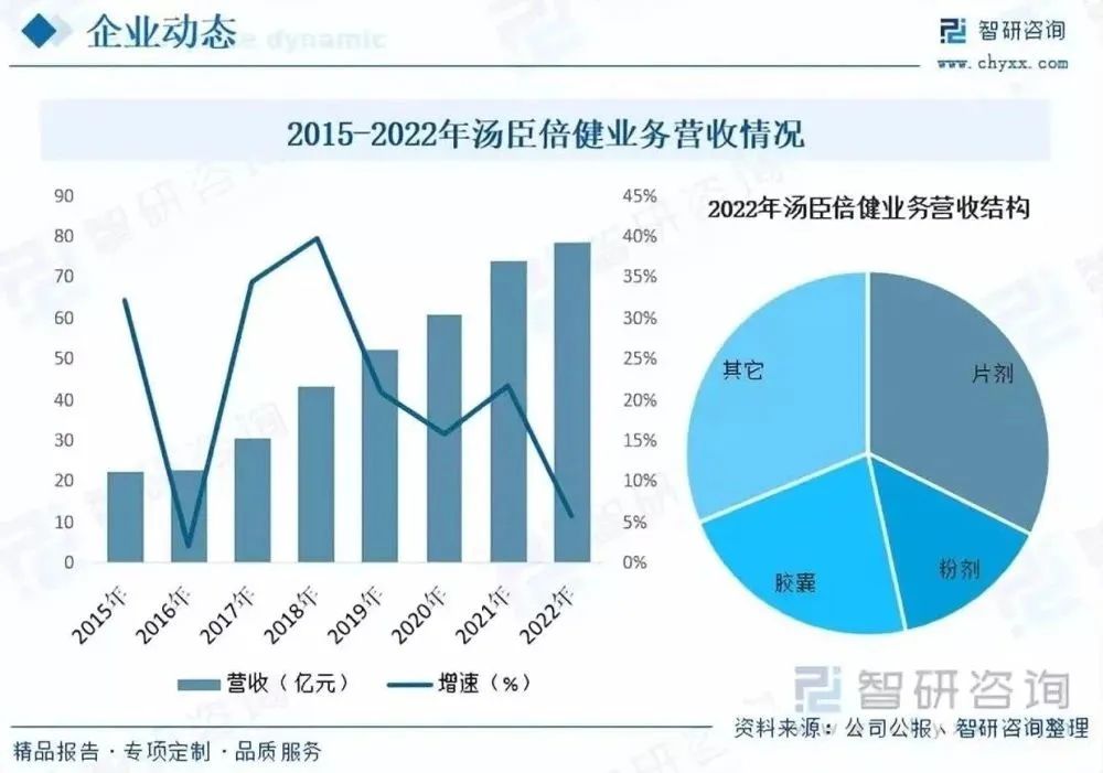 汤臣倍健股份有限公司成立于1995年,公司拥有行业内专业的“透明工厂”,是全球领先、品控严格的膳食营养补充剂生产基地之一,2002 年,公司系统地将 VDS 引入中国非直销领域,依托预防医学和现代营养科学,建立了全品类、全人群、全覆盖的膳食营养补充剂科学体系,销售产品覆盖增强免疫力类(如蛋白粉)、女性健康类(如胶原蛋白)、骨骼健康类(如氨糖软骨素钙片)及维生素类(如多种维生素)等品种,是中国乃至全球膳食营养补充剂行业领先者。据资料显示,2022年公司业务营收为78.61亿元,同比增长5.79%。其中片剂产品营收占比为32.35%;粉剂产品营收占比为14.27%;胶囊产品营收占比为22.18%。