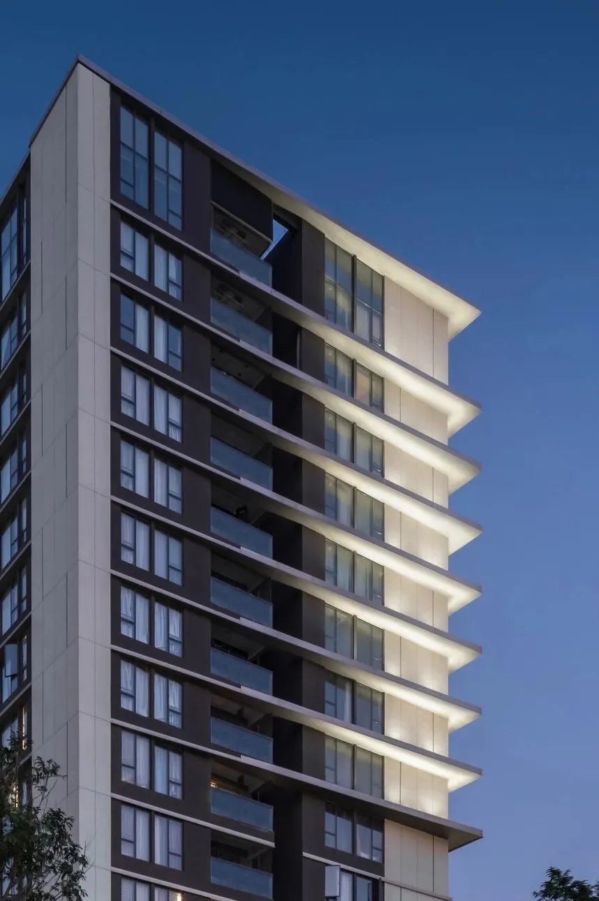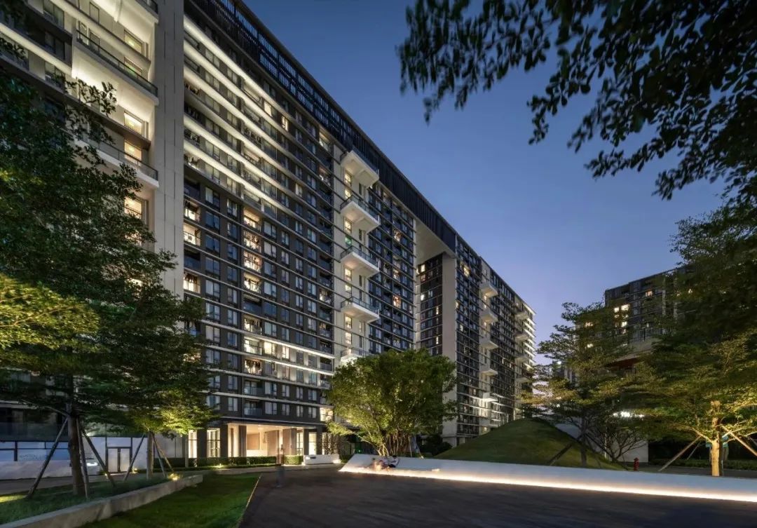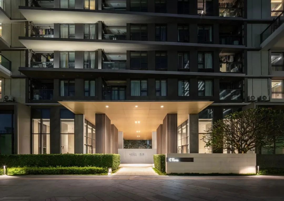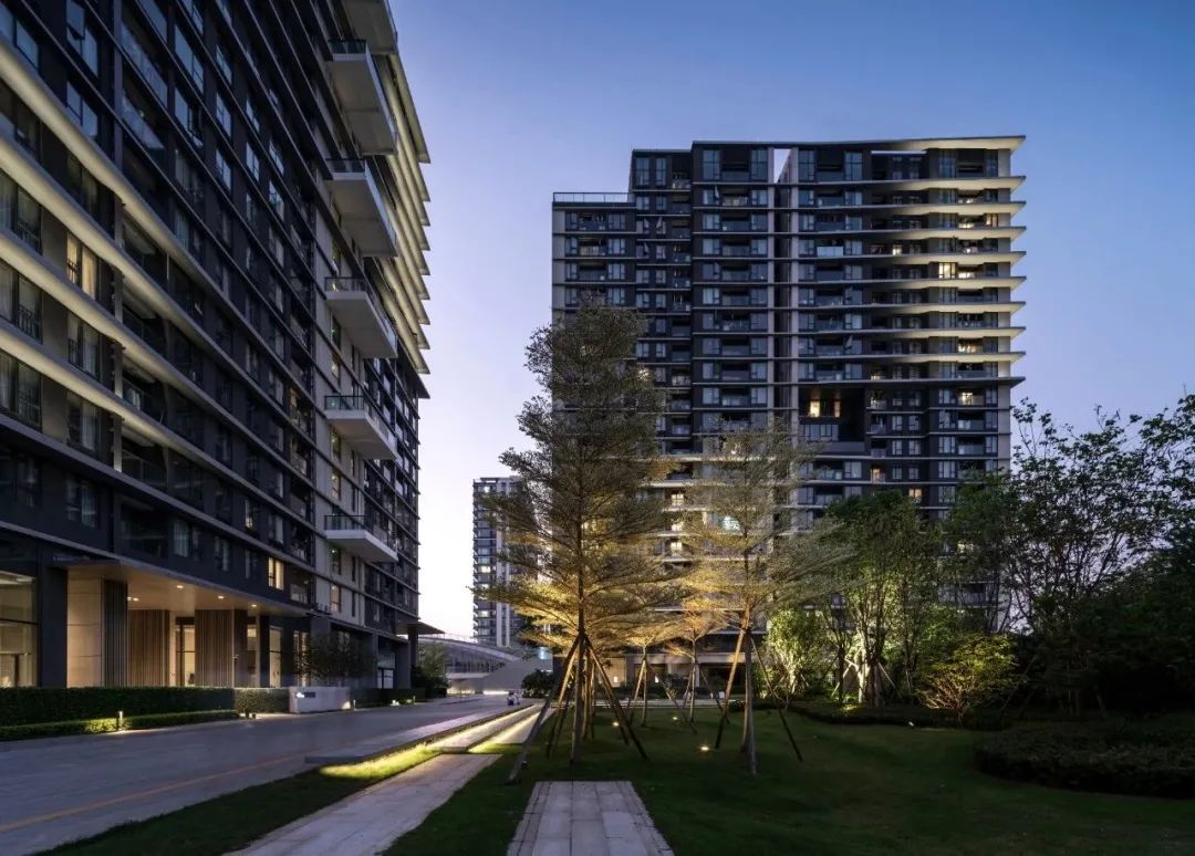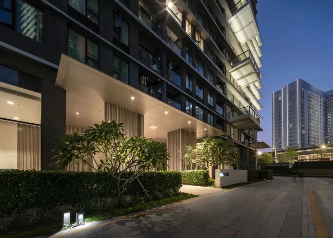 户外景观以人流动线为导向,同样以光影交替的节奏感打造精巧绿植口袋花园。除基础照明和氛围提亮外,当代主义简约造型感灯具的使用,也为自然园林增添了观赏趣味和视觉深度。