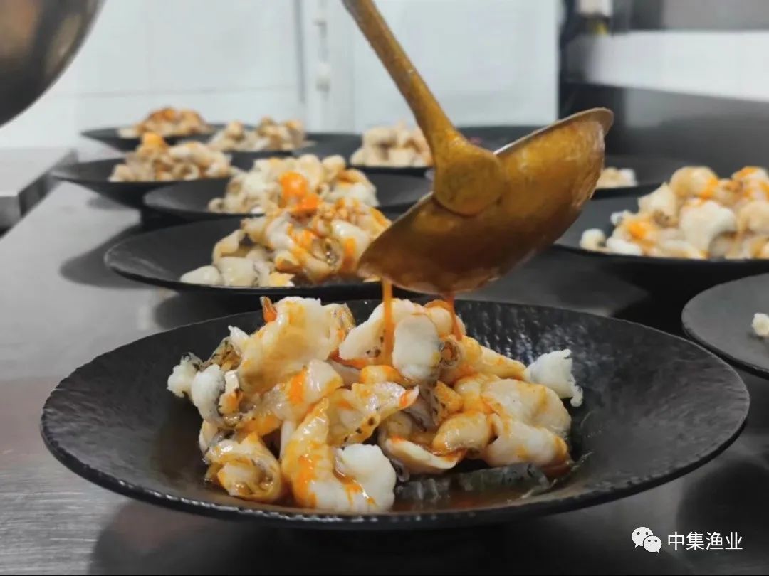 本次中集渔业选择供观众品鉴的脆鲷鱼菜式是凉拌脆鱼片,凉拌脆鱼片口感脆爽,是餐前菜的又一创新型冷菜,其独特口感和味道深受现场观众的好评,想必在未来会成为餐饮爆品。