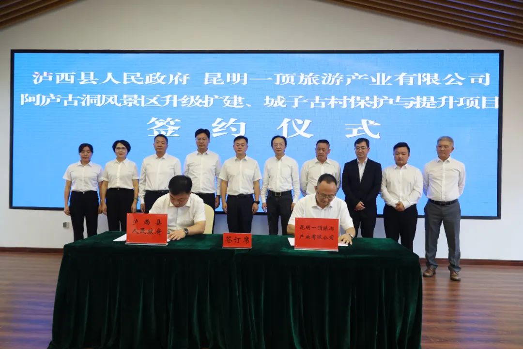 8月28日,我县与昆明一顶旅游产业有限公司在泸西签约旅游开发合作项目。