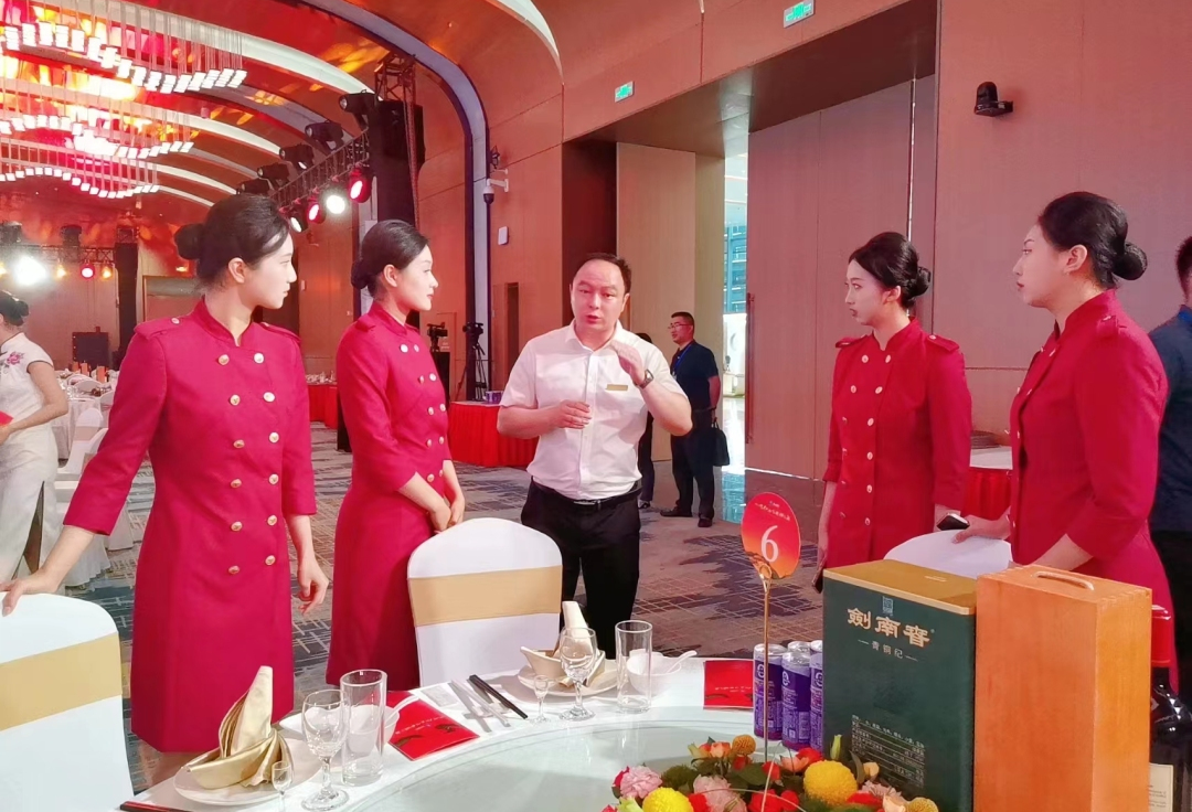 宴会厅内采用异形舞台,环形LED屏幕,场馆餐饮团队精心设计餐叙摆台、菜肴出品以及礼仪服务。