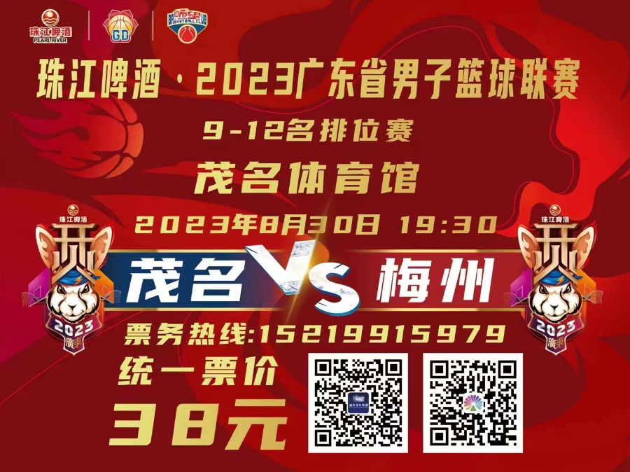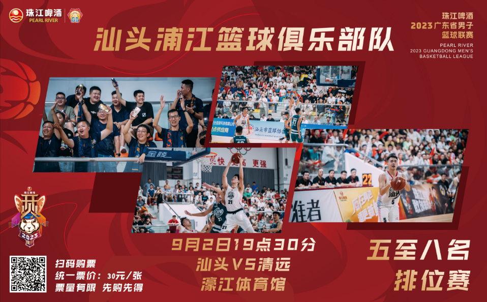 珠江啤酒·2023广东省男子篮球联赛五至八名排位赛2023年8月30日(周三)晚上19:30清远vs汕头。