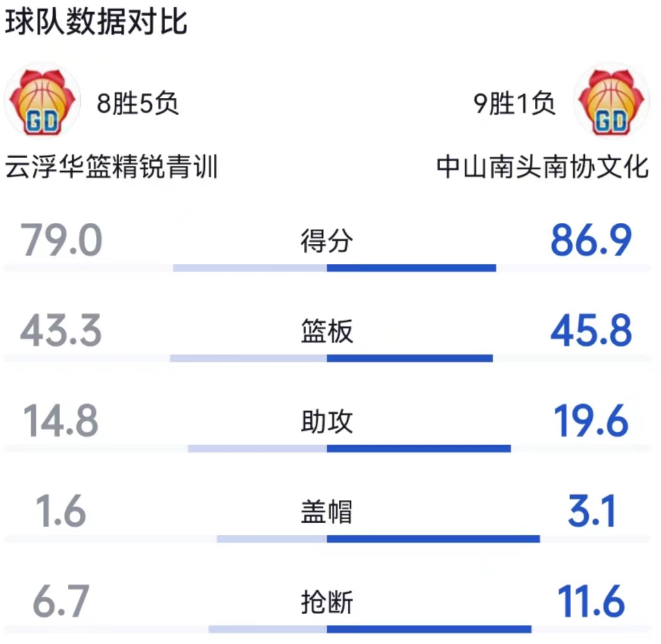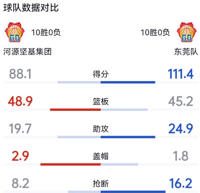 东莞队两轮八强赛净胜佛山105分