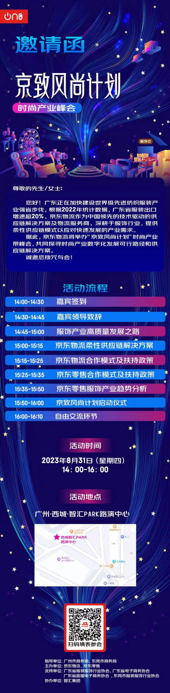 8月31日,广州市商务局联动京东物流举办的“京致风尚计划”时尚产业带峰会将在广州西城智汇PARK路演中心启动,诚邀行业协会以及优秀商家企业踊跃参与。