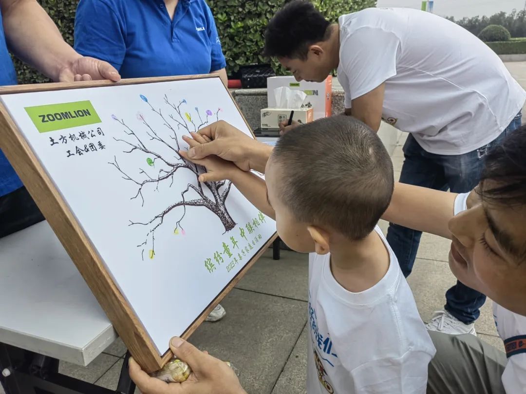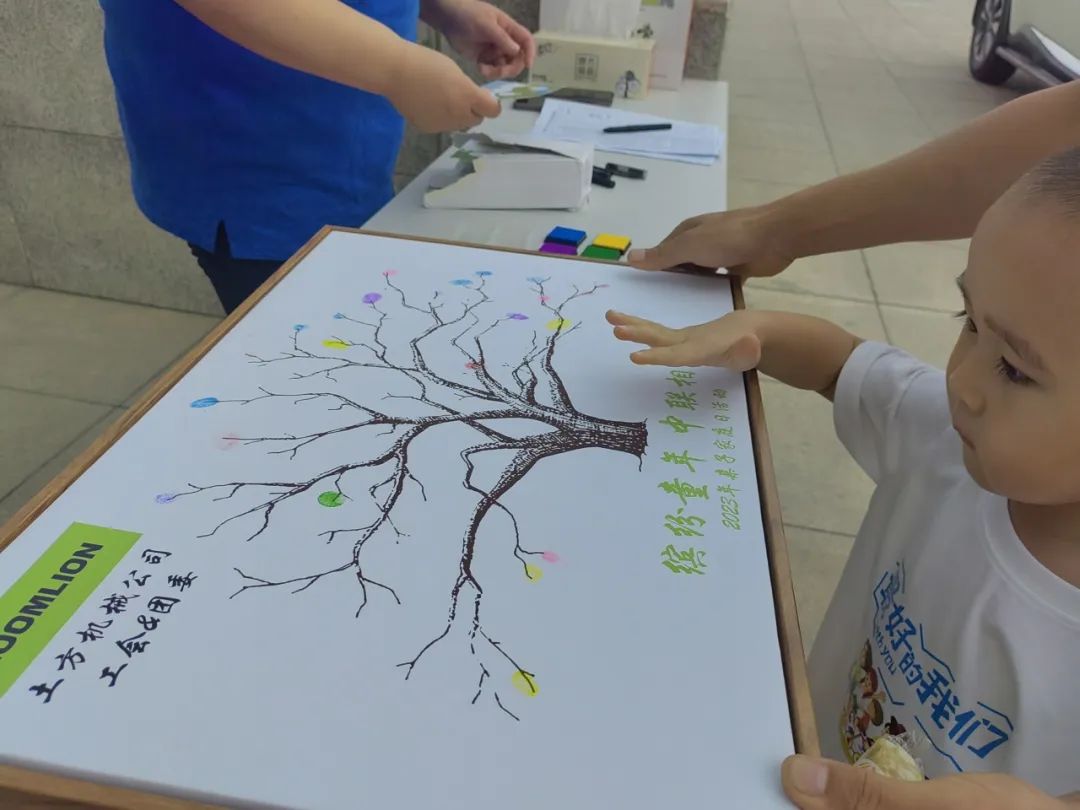 上午七点半,参加活动的员工、家属、孩子们陆陆续续来到签到区,孩子们共同制作了一颗漂亮的指纹签到树,留下一副可以珍藏的美丽纪念品。签到结束后,所有的员工、家属在网架大厅下集合,渭南园区管理部张毅涛部长致辞,对员工和家属们的到来表示欢迎和感谢。接下来,工作人员带领大家依次参观了园区企业文化长廊、中挖装配线,之后到达基地楼前观看了叠红酒杯、穿针引线、钢铁华尔兹圆舞曲等精彩的挖机表演。小朋友们被挖机精巧灵敏的动作所吸引,不时提出各种有趣的问题,惹得众人频频捧腹大笑。