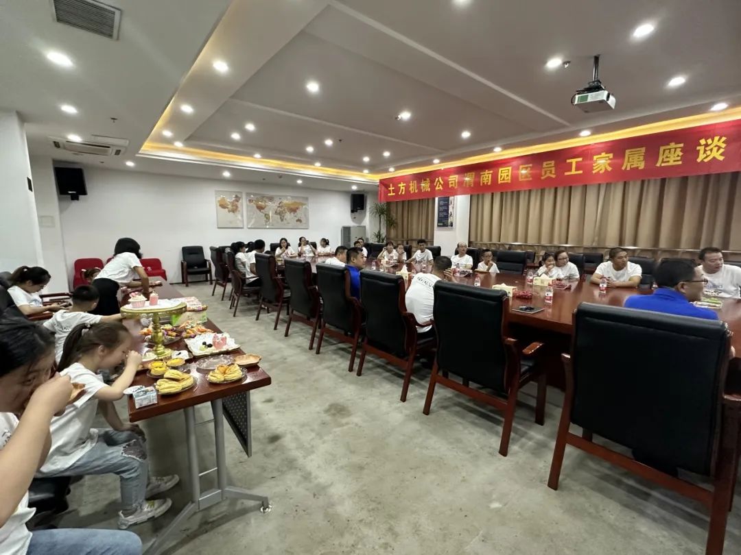 在园区309会议室,公司工会委员王二龙、管理部部长助理张毅涛、人力资源部副主任孙智峰、生产制造部部长助理贾伟、党群行政室副主任刘星、公司团委书记杨娟和员工家属代表们坐在一起敞开心扉,开展座谈会,现场对员工及家属的情况进行关心询问,为家属解惑答疑。员工家属表示,非常感谢公司举办的亲子游园活动,通过参观,深刻地了解了公司的发展历程,对公司所开展的关爱活动表示高度赞扬,大家一致认为,家属在中联重科上班很有自豪感。同时,在会上提出的一些他们关心的问题,在场的领导也当场给予了回复,让家属们更加安心。