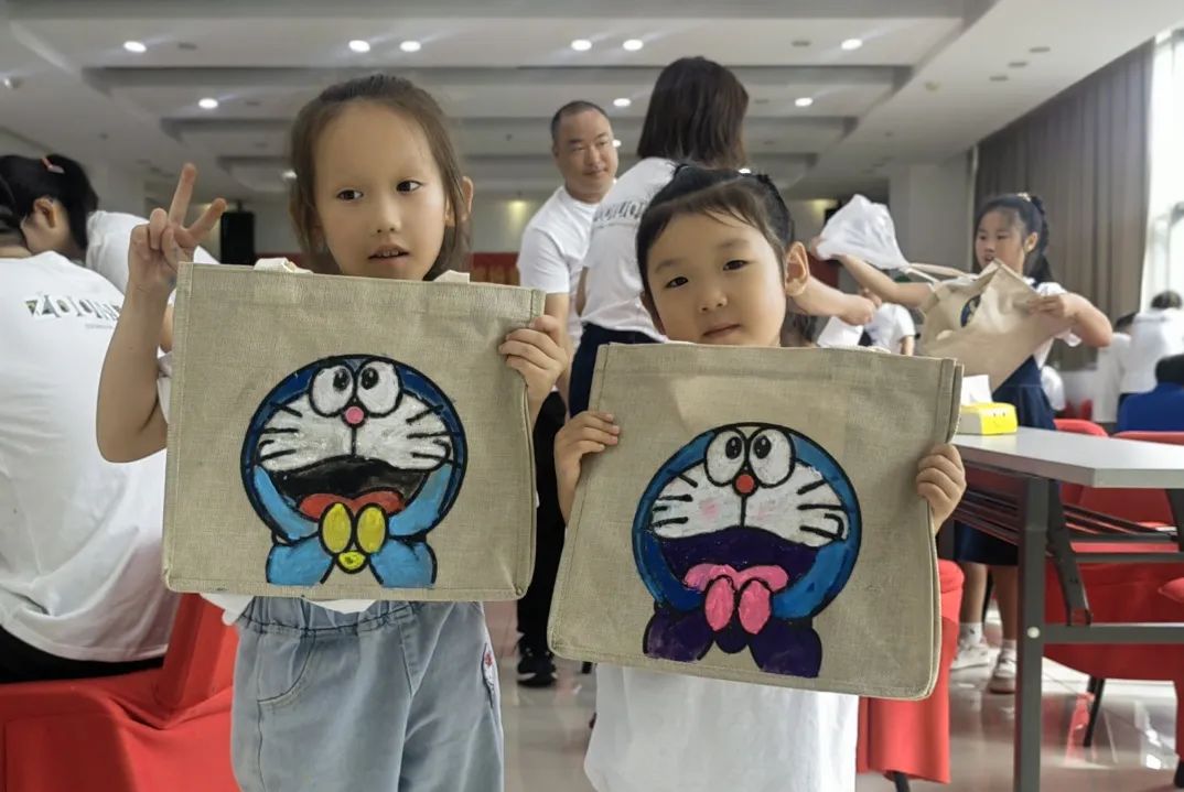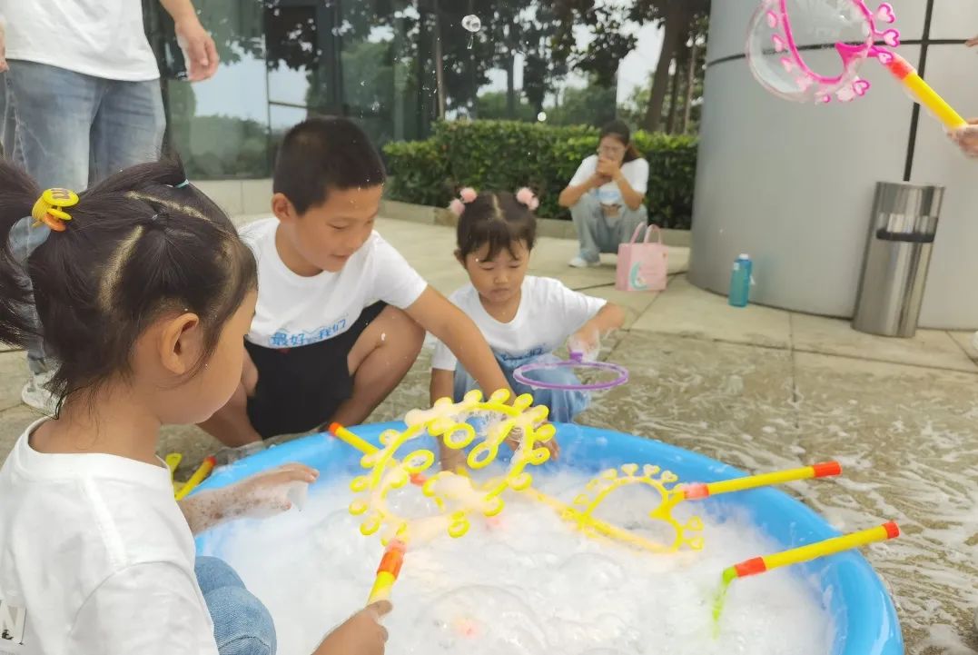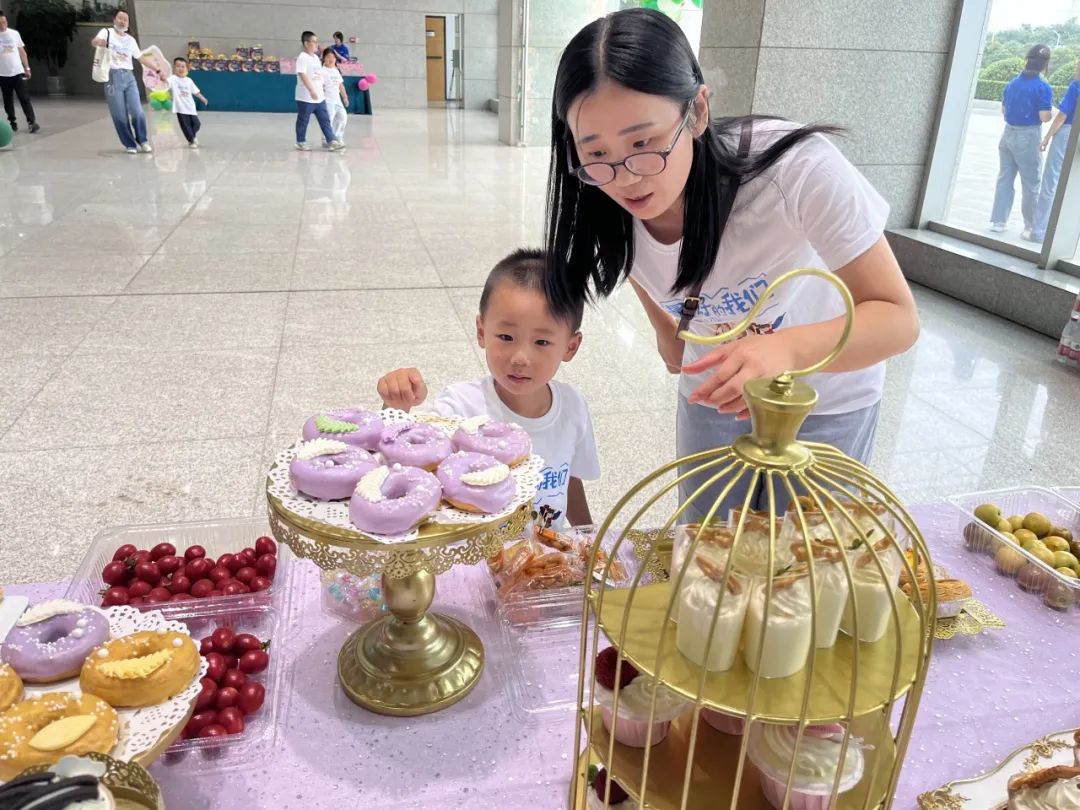 和这边热闹的比赛现场相比,另一边的闲憩互动区就显得比较安静了,员工及家属一边享用各种美味的茶歇、糕点、水果、饮料等,一边进行亲子手工DIY制作,员工和孩子一起不紧不慢,默契配合,共同完成DIY作品。年龄较小的小朋友也在一旁玩起了钓鱼、泡泡秀等,尽情感受夏日的浪漫。
